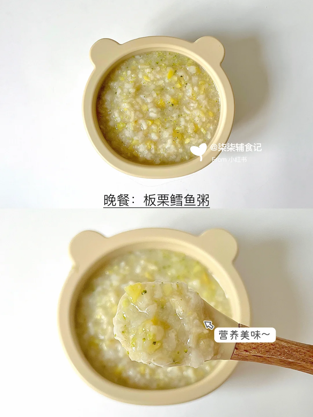 晚餐板栗鳕鱼粥和手指饼干,本来是板栗豆腐鳕鱼粥的,结果最后忘记放豆腐啦哈哈哈哈,都准备吃了才想起来还有豆腐没放😂