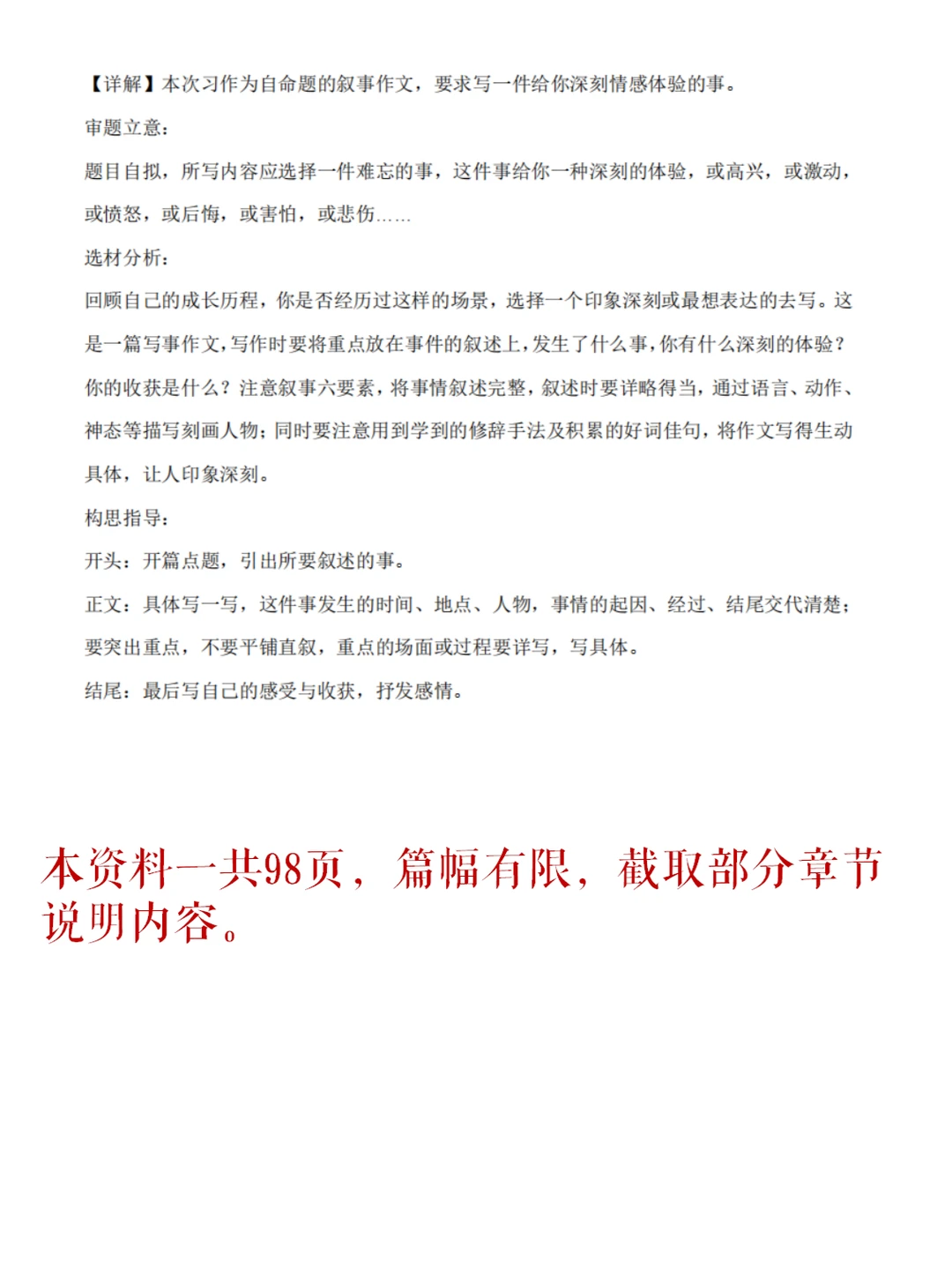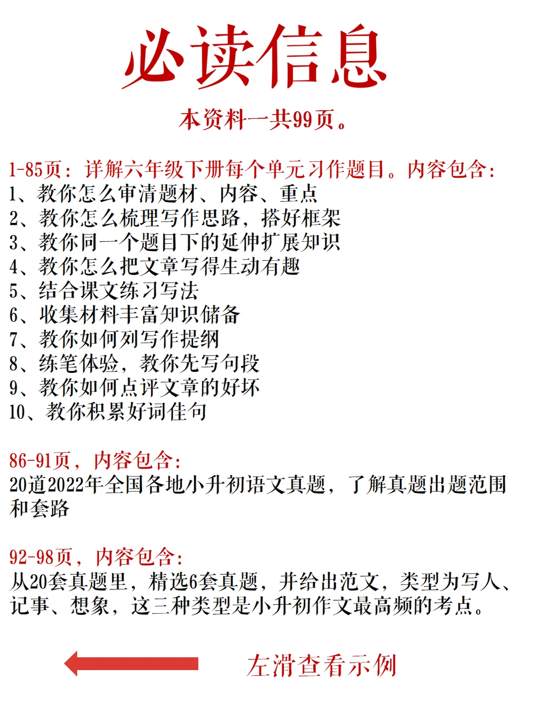 ❤️小升初考试作文基本框定在写人、记事、想象这三类作文,小蓝老师熬夜整理了99页作文秘籍,搞定这份资料,写作又快又好。