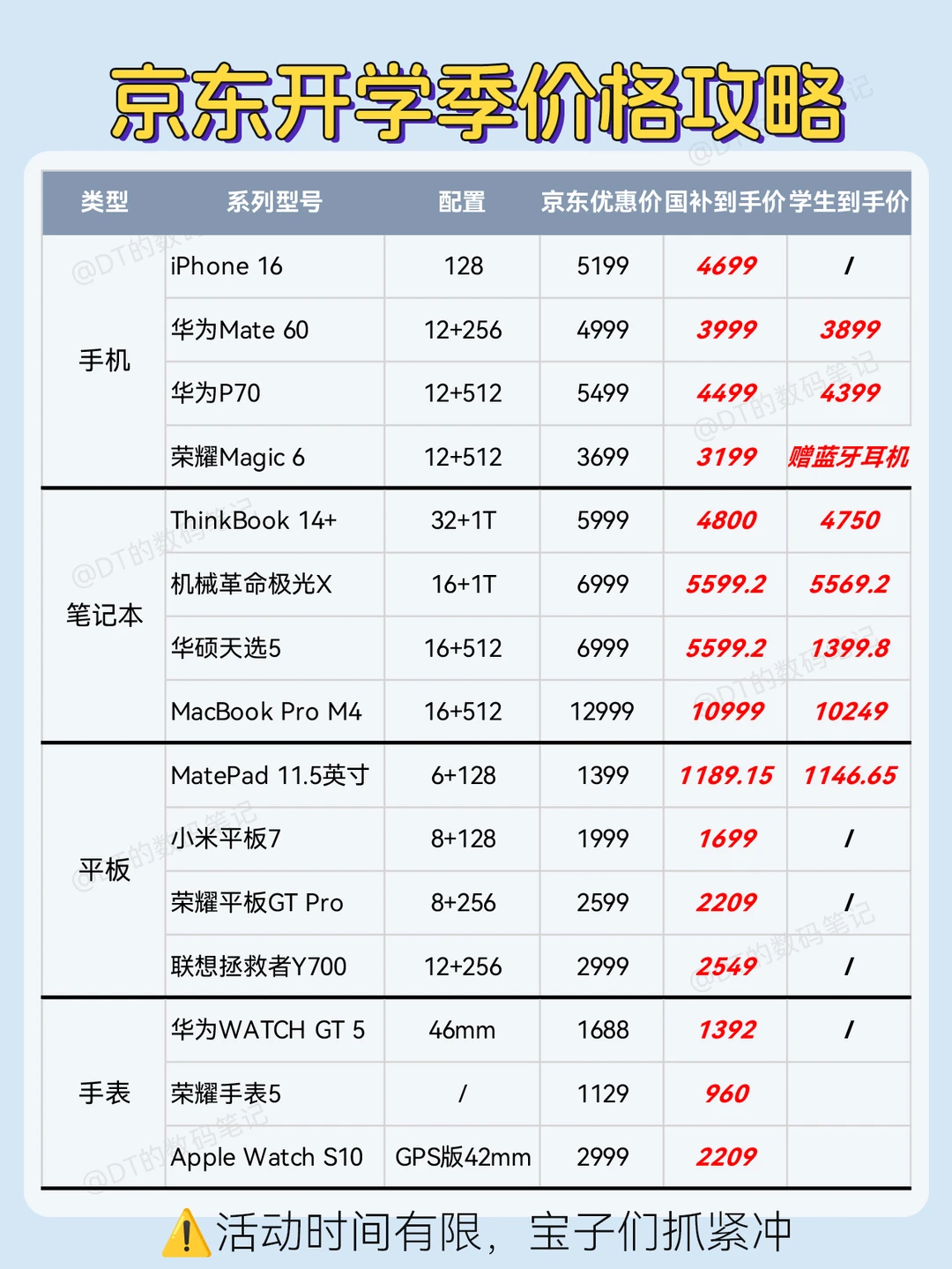 不想开学但想开了 京东3C数码开工开学季 文具3点半天天折上9折 上京东抽百款IP盲盒 国补优惠 苹果降价 华为降价