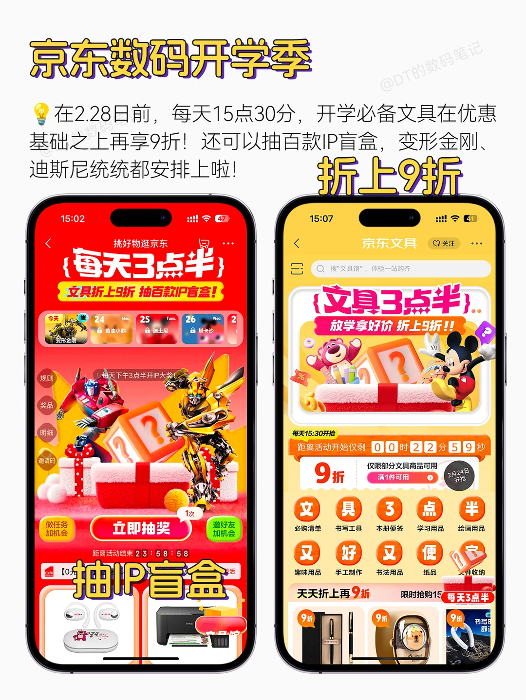 ✅另外在2.28日前,每天15点30分,开学必备文具在优惠基础之上再享9折!还可以抽百款IP盲盒,变形金刚、迪斯尼统统都安排上啦!