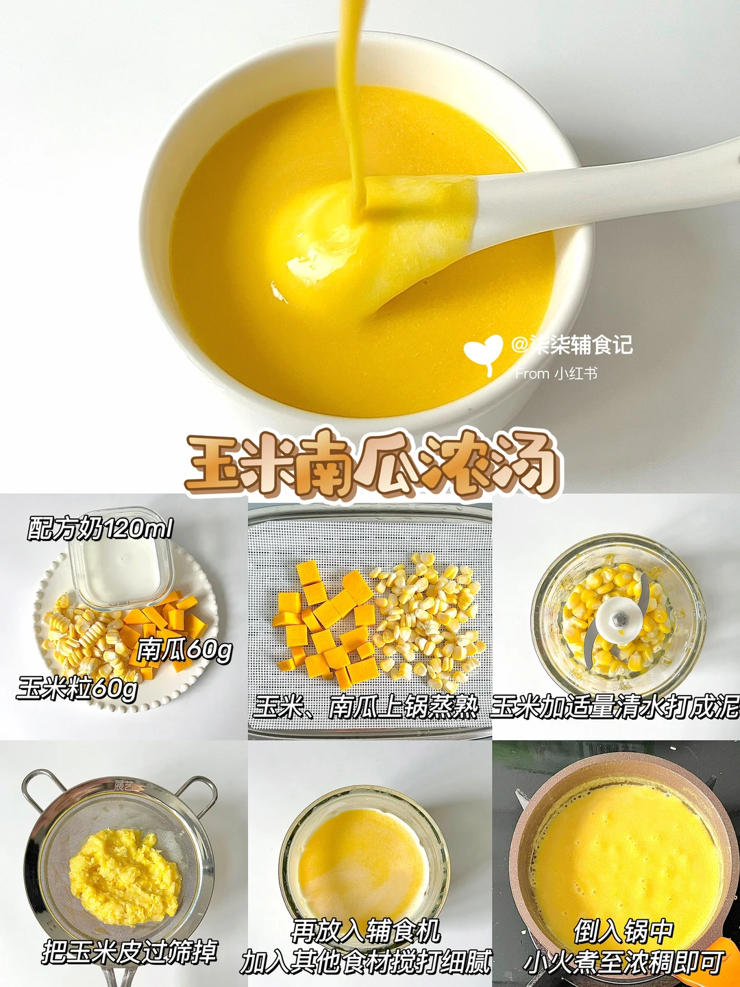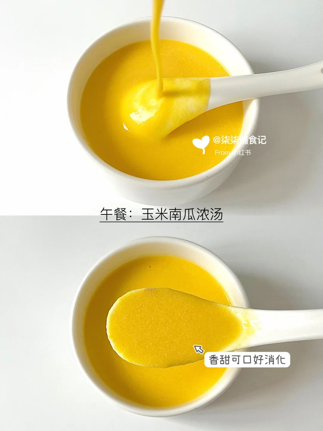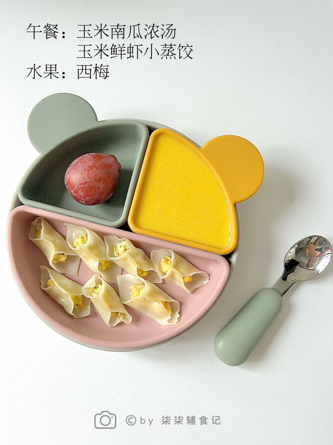 👧:11个月➕14天 ⏰:午餐11:00 🥣:玉米南瓜浓汤 🤌:玉米鲜虾小蒸饺 🍽️:水果:西梅 ⏰:晚餐18:00 🥣:番茄牛肉鸡蛋面 🤌:奶香黑芝麻松饼 午餐玉米鲜虾小蒸饺和玉米南瓜浓汤,蒸饺一次做太多可以生的直接放冷冻保存,要吃再拿出来蒸15~20分钟,吃起来还是很鲜很好吃哦😋 晚餐番茄牛肉鸡蛋面和奶香黑芝麻松饼,宝宝吃的黑芝麻买配料表只有黑芝麻的比较好哦~有些黑芝麻会加其他东西,还是不要给宝宝吃~ ⚠️食材分量根据宝宝的食量添加。 ⚠️食材大小根据宝宝的咀嚼能力处理。