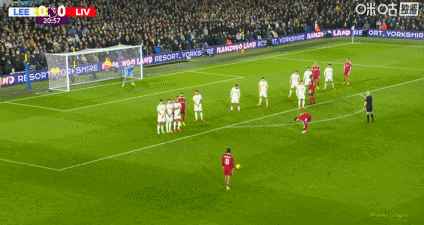 第22分钟,利物浦禁区前沿获得任意球机会,索博斯洛伊主罚直接攻门,球绕过人墙后高出横梁!↓