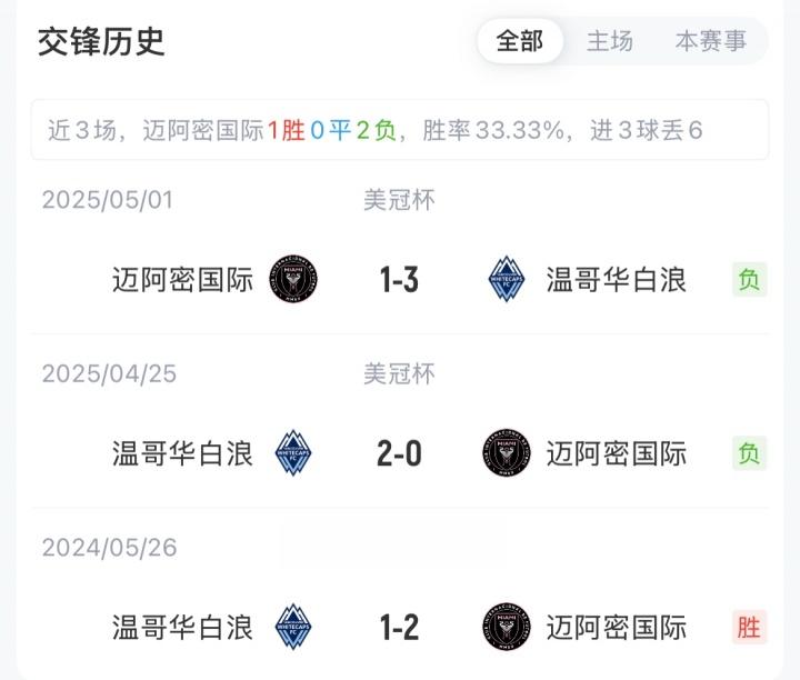 迈阿密与温哥华白浪都是首进总决赛,两队此前交手3次,迈阿密1胜2负。