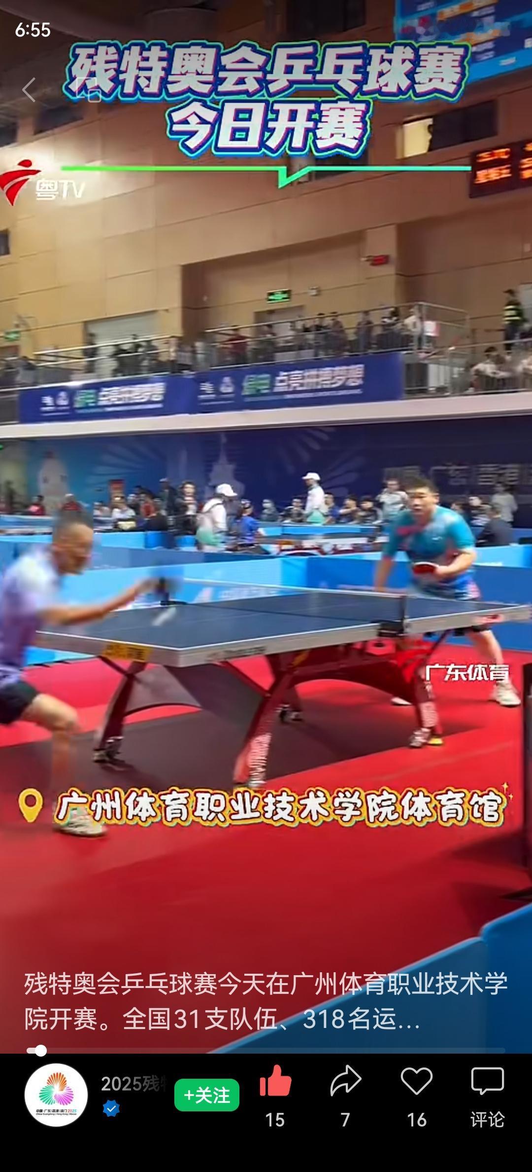 12月5日,全国第十二届残疾人运动会暨第九届特殊奥林匹克运动会乒乓球项目在广州开赛。 虽然说这是残疾人运动会的乒乓球比赛,但是,对我来讲,它却有着一种特殊的意义。因为,在这众多的运动员中,有着我的一位近三十年即是球友又是良师益友的传奇人物,张小平先生。 提起张小平,可能大家比较陌生。然而,当我要告诉大家的是,在中国所有残疾人乒乓球运动员中,绝无仅有的一位,经历了全部十二届残运会,今年已经65岁的老将来,一定会让你刮目相看,自愧不如。 大家应该清楚,十二届残运会决非十二年,而是十二年乘以四,整整四十八年。 别说是残疾人,就是我们健全人,能在近五十年的岁月里,把青春和汗水都献给了乒乓球事业。并且,以65岁的年龄,依旧在赛场上绽放自己的活力,谈何容易啊! 近日,随着大会各项赛事的展开,比赛将会越来越激烈。在这里,我们预祝他宝刀不老,再创佳绩,更上一层楼,期待你凯旋归来!