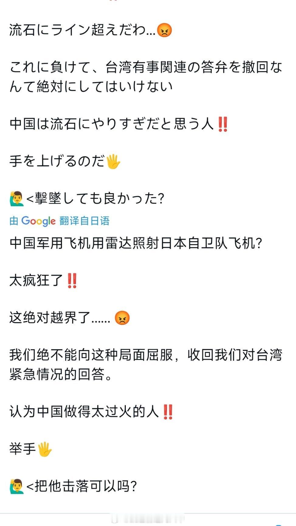 日本网民正在就歼15火控雷达照射F15事件疯狂哈气“中国,你可别低估日本人。你最清楚日本人真正生气时会是什么样子🤬”烽火问鼎计划台海局势高市早苗