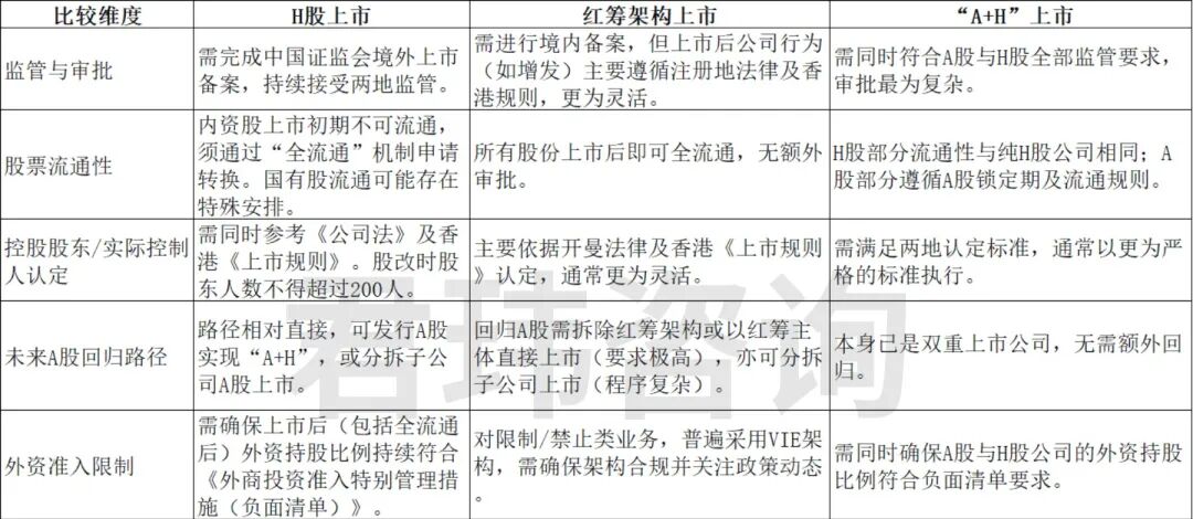 ·上市方式灵活:可选择同步上市,或先后在A股和H股市场上市(“先A后H”或“先H后A”),需协调两地发行事宜。