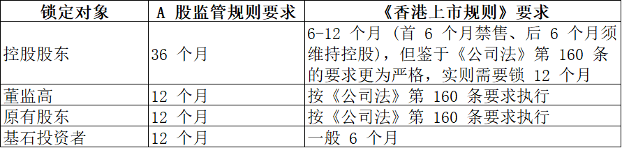 ·需同时遵守A股与H股的锁定期规则。根据香港《上市规则》,控股股东一般锁定期为上市后6个月。若涉及特专科技公司,锁定期可能延长至12-24个月。