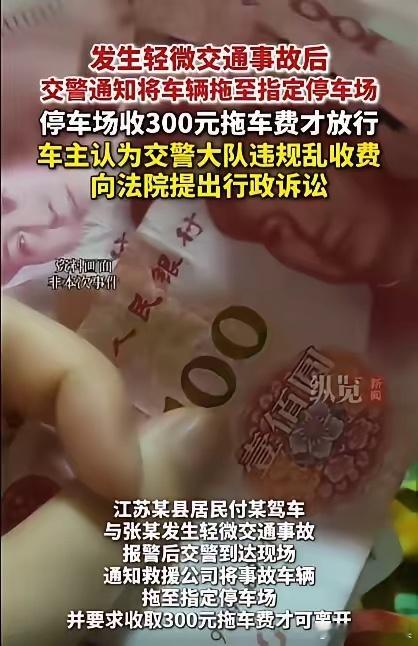 江苏宿迁,一男子开车与另一辆车发生轻微刮蹭,车损也就600元,可交警却说要把车拖到指定停车场,然后通知救援公司来拖车。事后男子提车时被收取了300元拖车费。男子认为停车和交警队有串通乱收费,于是将交警队告上法院,要求认定拖车行为违法,并退还300元,可一审法院却以不是行政案件为由不予立案。直到检察院介入此事后,才有了不一样的结果。(来源:纵览新闻)2022年2月14日早上,付先生开车去上班时与一辆小车发生了轻微剐蹭,并没有人受伤,车损大概也就600元,但对方却选择了报警处理。按照付先生的设想,这种小事故应该处理得很快,可交警来到现场勘察后,却通知了一家救援公司,把两辆车都拖到了指定停车场。付先生和对方车主都懵了。次日,付先生到了交警队处理交通事故,然后拿到了一张“车辆放行通知书”去提车。可到了停车场准备提车时,却被要求缴纳300元拖车费,否则不能提车。付先生和对方理论了几句,但没有任何作用,无奈之下,他不情愿的付了钱。回家后,付先生越想越不对劲,交警也没有出具行政强制措施凭证,这不属于扣车行为,那为什么要缴纳拖车费?之后,付先生一纸诉状将交警队告上了法院,要求确认交警队指定的停车场扣车、收费的行为违法,并退还300元。法院受案时发现,收取付先生300元拖车费的是拖车公司,并不是交警队,二者之间也没有隶属关系,所以收费行为并不属于行政行为,不在受案范围,故未予以立案。付先生还是很不服气,这毕竟不是300元的事,明明法律规定查封、扣押车辆的费用应当由出具查封、扣押决定的行政机关负责,怎么要自己缴纳这300元?《行政强制法》第26条第3款规定,因查封、扣押发生的保管费用由行政机关承担。因此,付先生选择了继续较真下去,他向多个平台投诉交警的乱作为以及停车场乱收费行为。直到2025年,此事终于有了回应。当地检察院在调查期间,发现与付先生同类的情况在2021年~2024年之间频繁发生,投诉记录达到了300条。检察院十分重视,立即成立调查组介入。检察院调查后认为,付先生的那起交通事故只是轻微剐蹭,交警在处理完交通事故后,完全可以让付先生和对方车主把车开走,而无需将车拖至指定停车场。《道路交通安全法实施条例》第104条规定,机动车驾驶人有下列行为之一,又无其他机动车驾驶人即时替代驾驶的,公安机关交通管理部门除依法给予处罚外,可以将其驾驶的机动车移至不妨碍交通的地点或者有关部门指定的地点停放:(一)不能出示本人有效驾驶证的;(二)驾驶的机动车与驾驶证载明的准驾车型不符的;(三)饮酒、服用国家管制的精神药品或者麻醉药品、患有妨碍安全驾驶的疾病,或者过度疲劳仍继续驾驶的;(四)学习驾驶人员没有教练人员随车指导单独驾驶的。结合案件详情,付先生和对方的车辆发生轻微交通事故,两辆车完全可以继续行驶,而且按照交警队的出警记录来看,付先生和对方都没有《道路交通安全法实施条例》第104条所规定的情形。因此,交警将付先生和对方的车给拖到停车场处理,且没有出具行政强制措施的凭证(实施查封、扣押时的决定书以及清单等),这已经违反了程序要求。检察院认为,交警队处理交通事故的程序已经违法,付先生起诉交警队要求确认扣车和收费行为违法,属于行政诉讼的范畴,故当初的法院以不是行政诉讼范围为由对付先生的起诉不予受理,属于认定错误。之后,检察院向上级法院提起了抗诉。后法院认定付先生起诉交警队的案件属于行政诉讼案件,而交警队在没有合理的依据的情况下,将付先生的车拖至指定的停车场,且未出具任何强制扣押的凭证,这个行为已经违反了法定程序,故扣押行为违法。救援拖车公司应当将300元退还给付先生。之后不久,当地就推出快赔机制,对于轻微交通事故的拖车费用,由负责处理的行政机关来承担。对此,有人认为付先生为了300元的拖车费,耗费这么多年的精力,不值得。但也有人认为,正是因为有像付先生这样人负重前行,才能让我们享受到更加公平公正的对待,这种人值得赞扬。