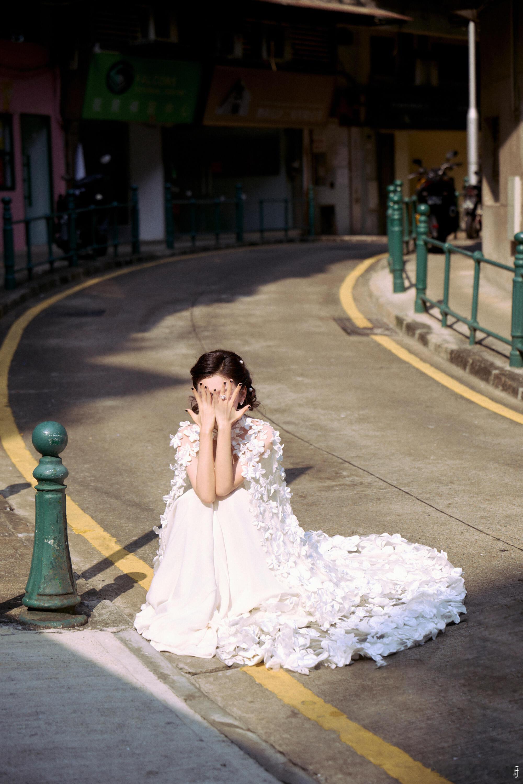 绝色美女,高定制作裙子华丽,时尚高雅的半袖连衣裙,白色修身大摆长裙,其裙摆为独特