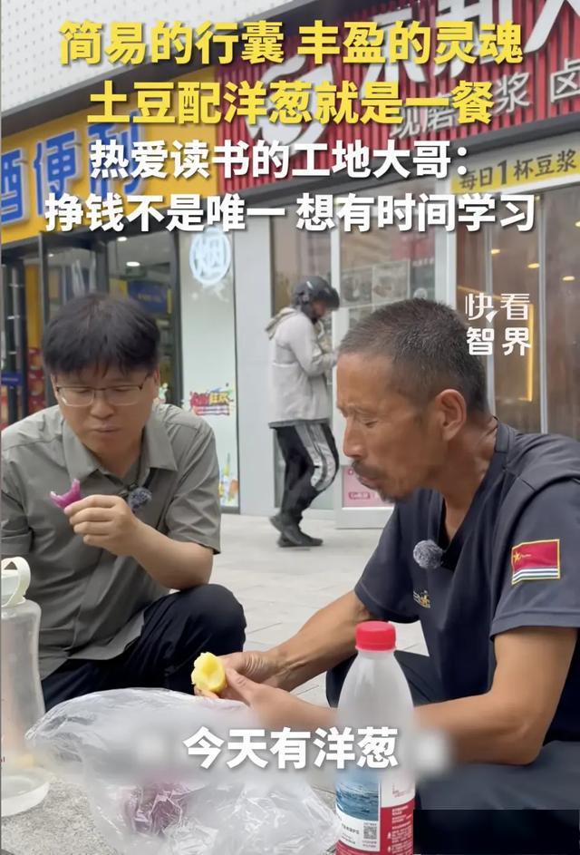 土豆配洋葱就是一餐,热爱读书的工地大哥刘诗利说,挣钱不是唯一,想有时间学习。