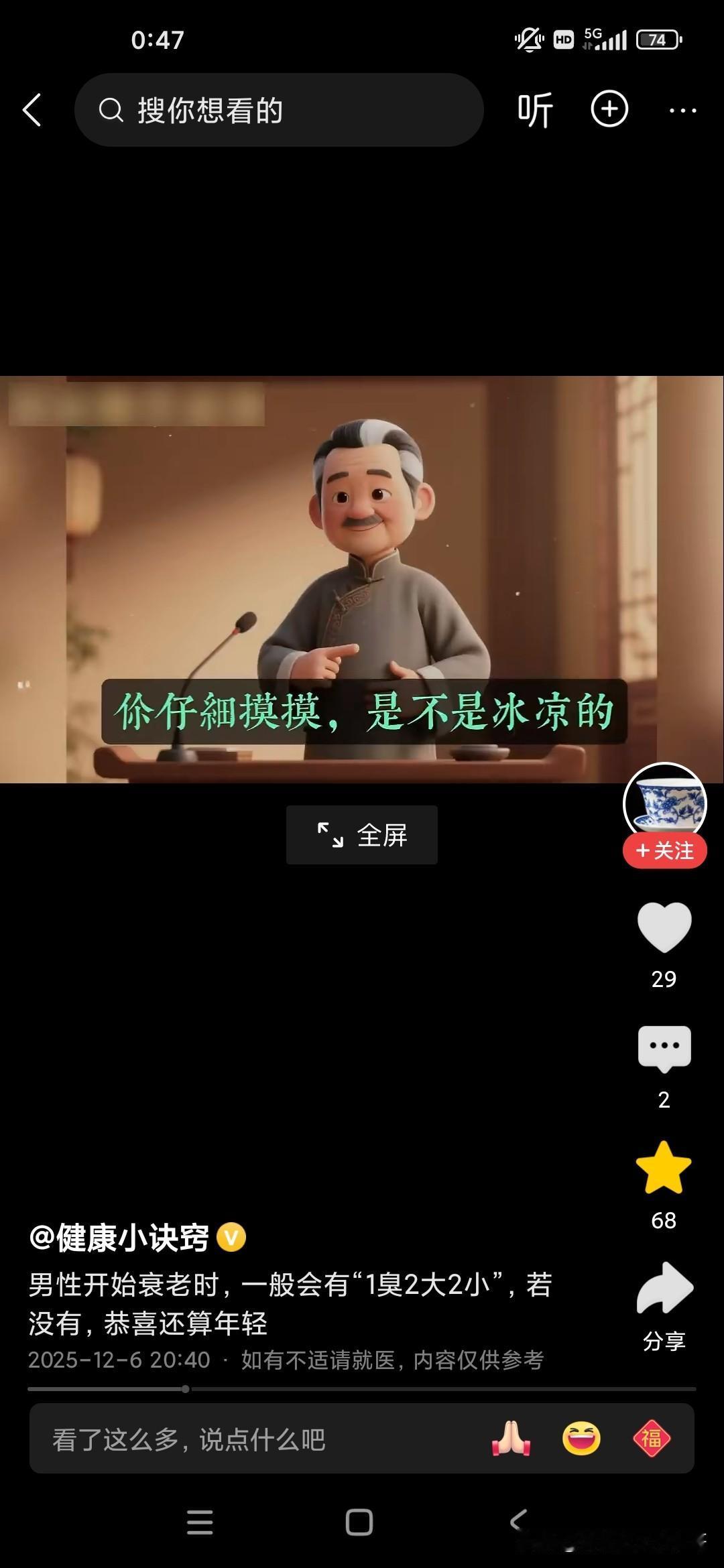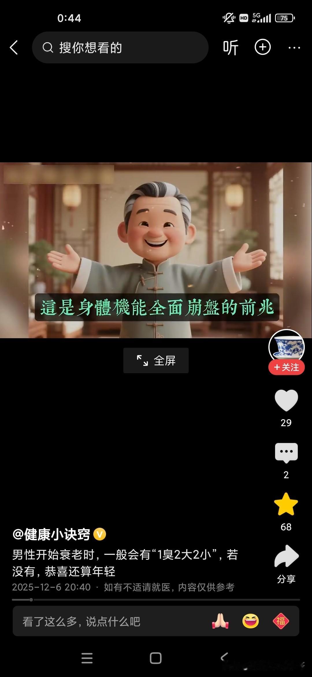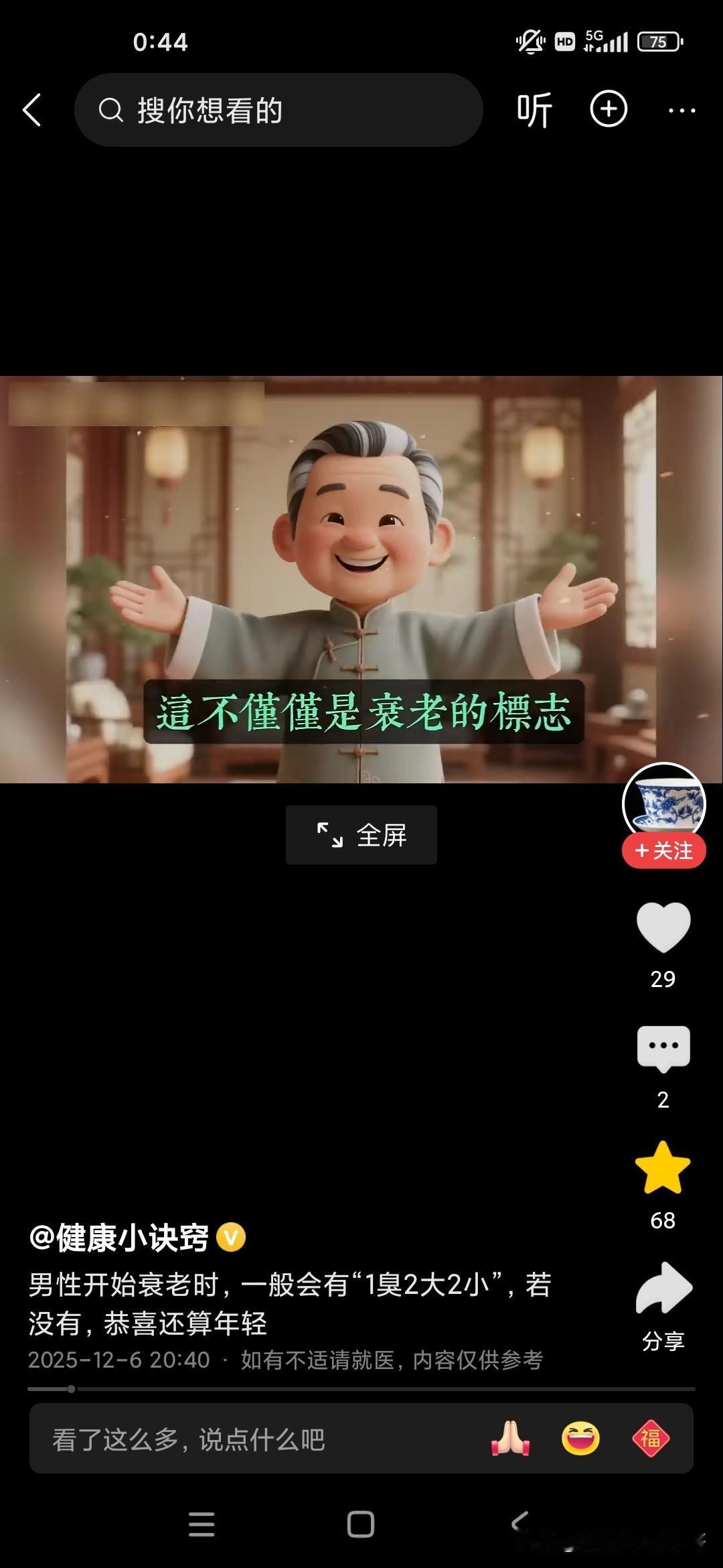 倪海厦老师说关乎我们的长寿的几个标志,还说人进入暮年或者老年有几个很重要的标志啊,他总结为一臭二大二小: 一臭的话就是人多远都可以闻到,身体上有一种臭味,不是不洗澡的臭味,也不是脚臭味,而是口臭味,这种味道的话,就像苹果烂掉的味道,还有就是书发霉的味道,就如果这种味道不是通过口香糖就可以去除的,也不是可以通过刷牙齿去除的,这说明你的内脏器官里边已经开始发酵了; 二大的话,第一个是肚子大,很多人都是梨形身材,两边小,中间大,可以加重心脏的负担,而且脂肪特别多,是非常可怕的一件事情,一般来说裤腰带太松,太大的话可能会影响到人的寿命; 第二的话是前列腺大,你再去医院里边动个手术啥之类的,只是治标不治本; 两小的话,第一的话是尿的水柱特别小,第二的话是胆子特别小,如果你有这些特征的话,说明你已经进入老年,进入暮年了!