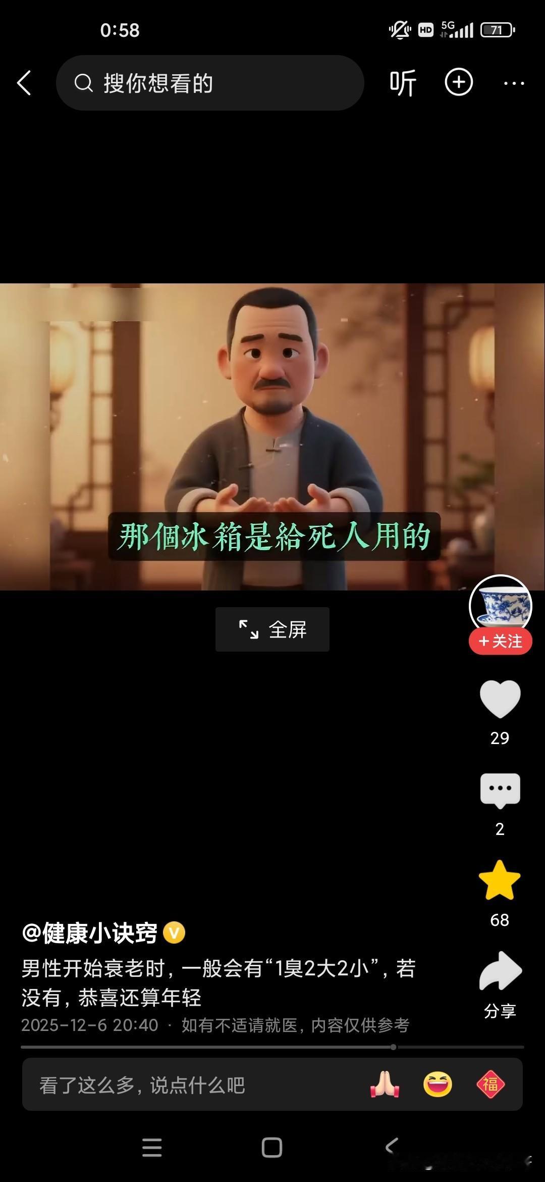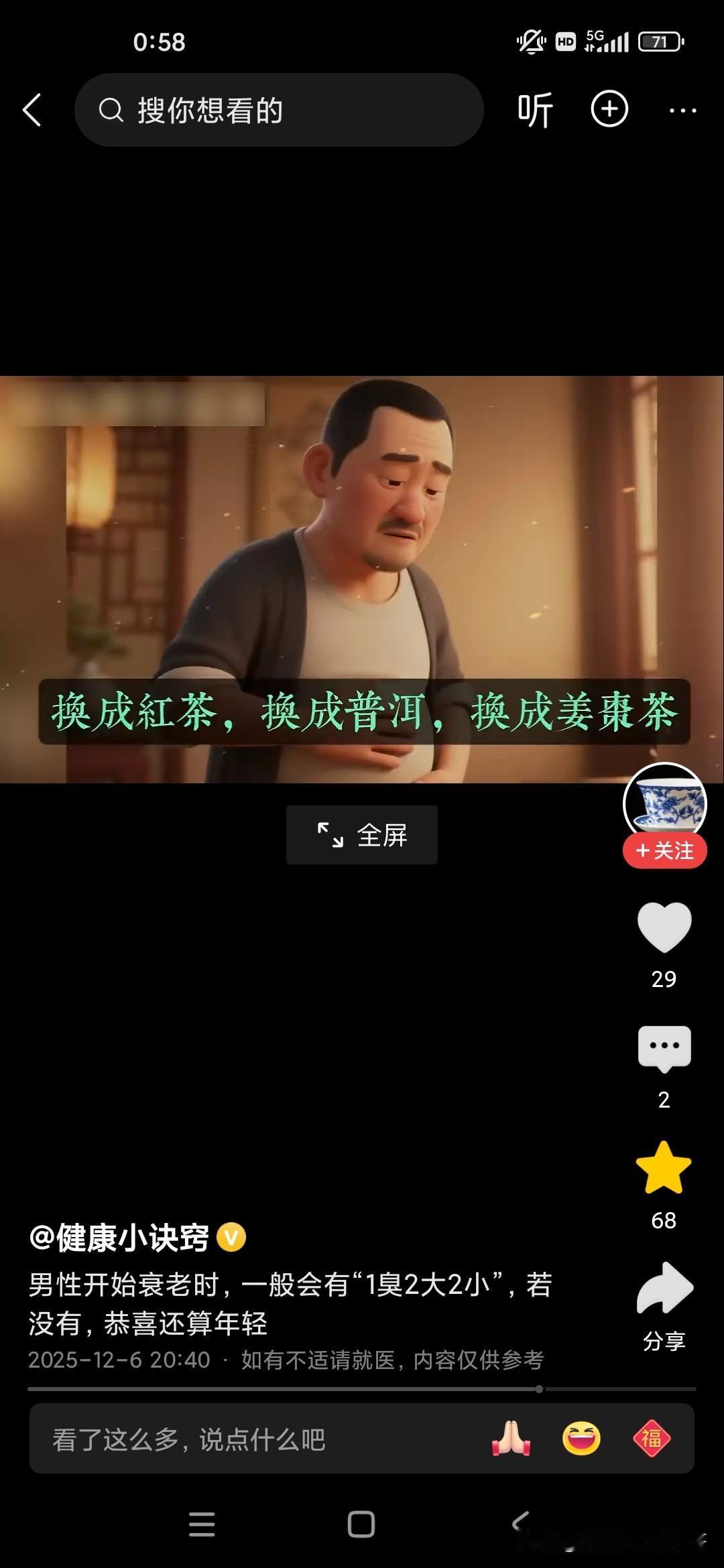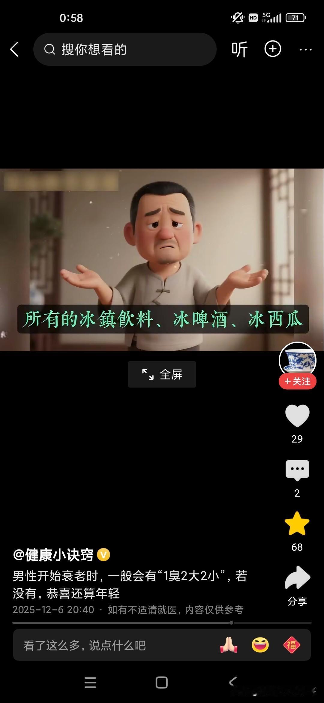 倪海厦老师说关乎我们的长寿的几个标志,还说人进入暮年或者老年有几个很重要的标志啊,他总结为一臭二大二小: 一臭的话就是人多远都可以闻到,身体上有一种臭味,不是不洗澡的臭味,也不是脚臭味,而是口臭味,这种味道的话,就像苹果烂掉的味道,还有就是书发霉的味道,就如果这种味道不是通过口香糖就可以去除的,也不是可以通过刷牙齿去除的,这说明你的内脏器官里边已经开始发酵了; 二大的话,第一个是肚子大,很多人都是梨形身材,两边小,中间大,可以加重心脏的负担,而且脂肪特别多,是非常可怕的一件事情,一般来说裤腰带太松,太大的话可能会影响到人的寿命; 第二的话是前列腺大,你再去医院里边动个手术啥之类的,只是治标不治本; 两小的话,第一的话是尿的水柱特别小,第二的话是胆子特别小,如果你有这些特征的话,说明你已经进入老年,进入暮年了!