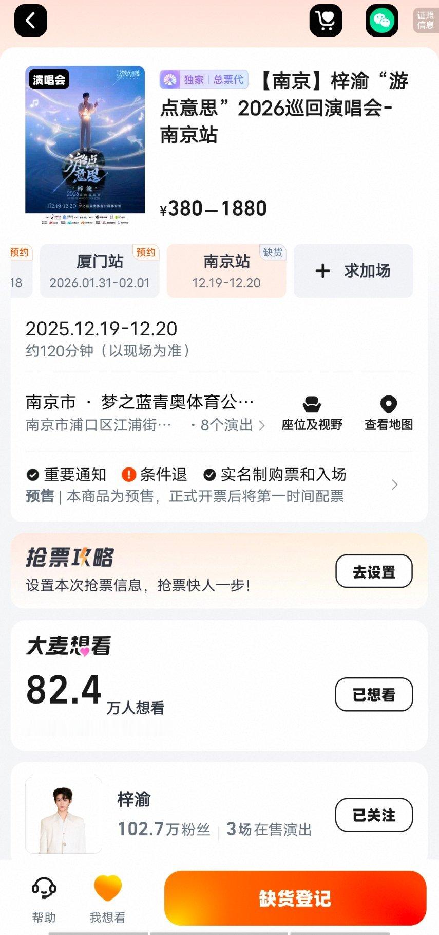 梓渝南京演唱会只知道82万➕人想看,门票全部秒售罄🔥🔥🔥