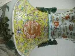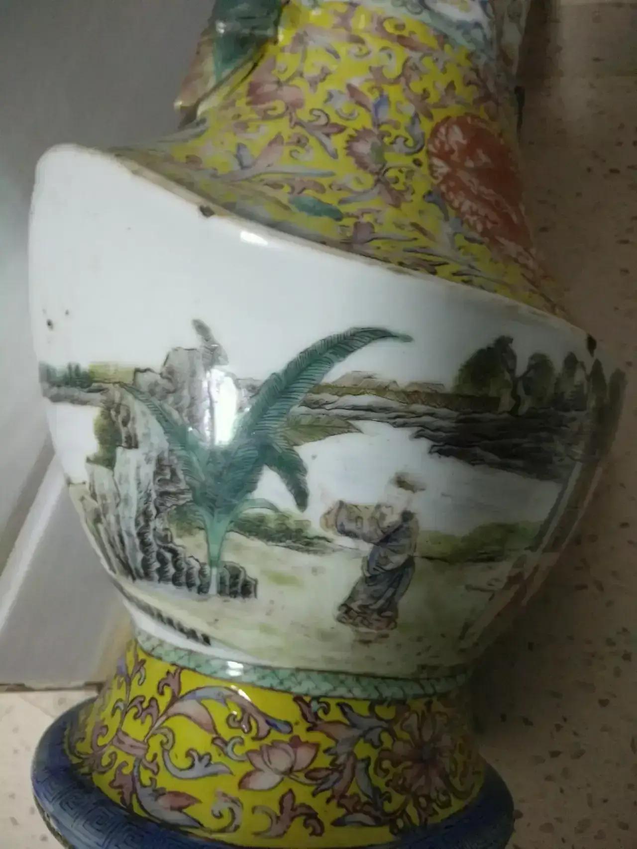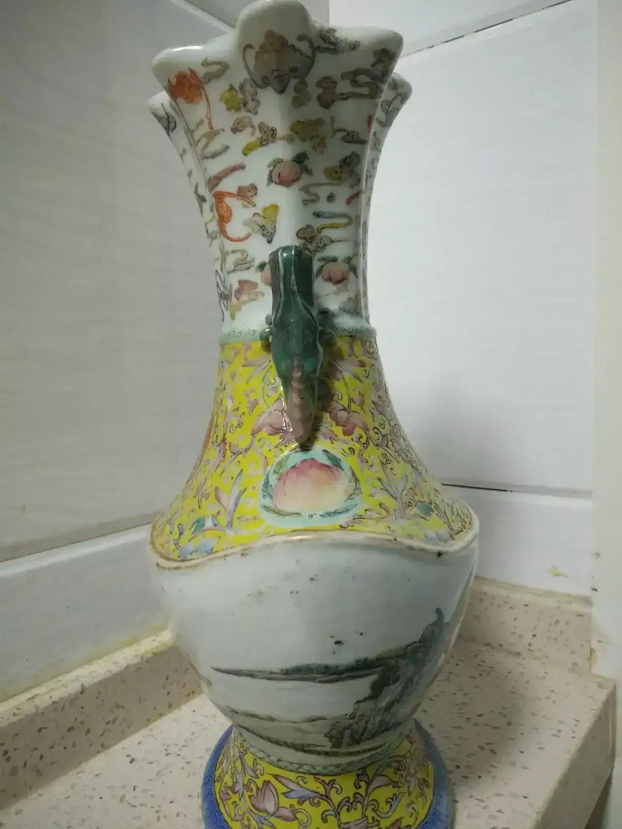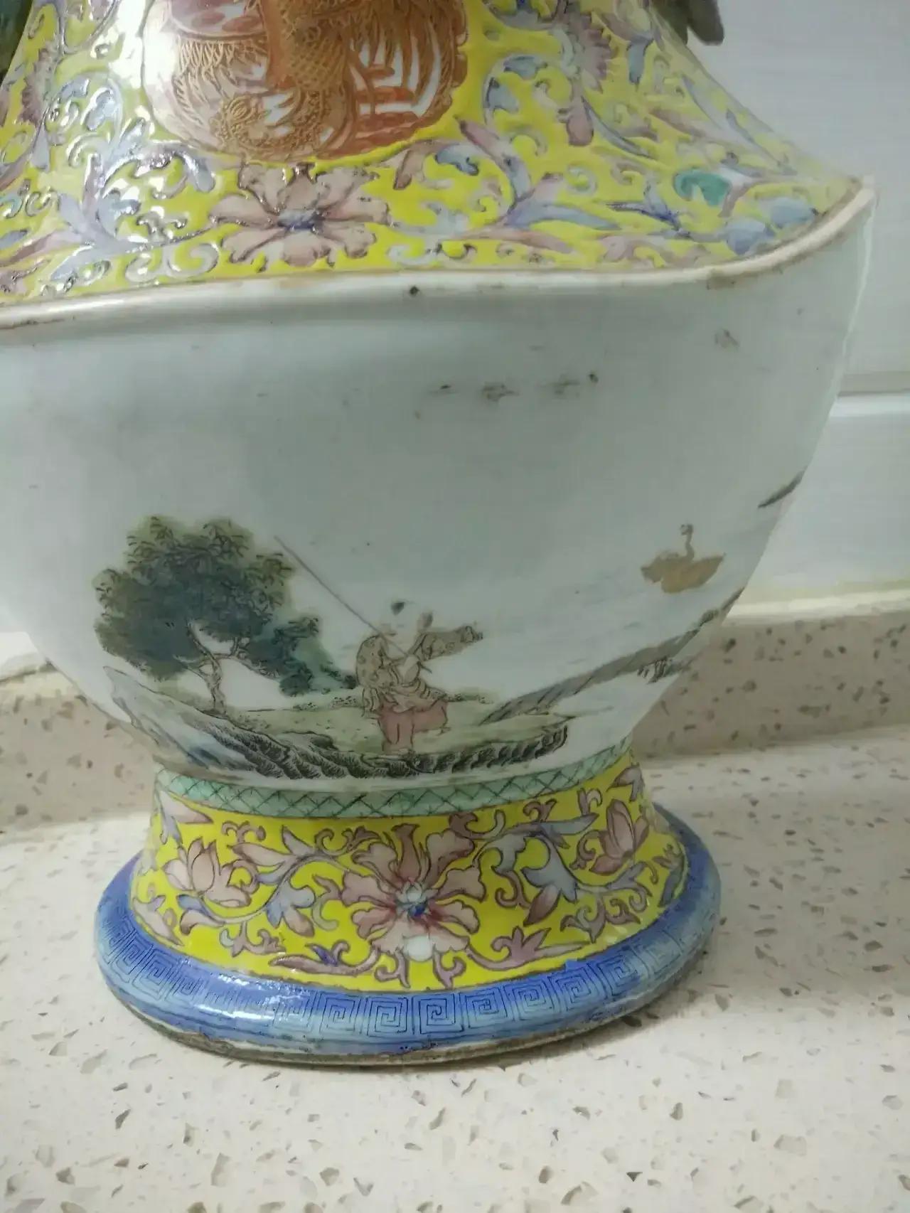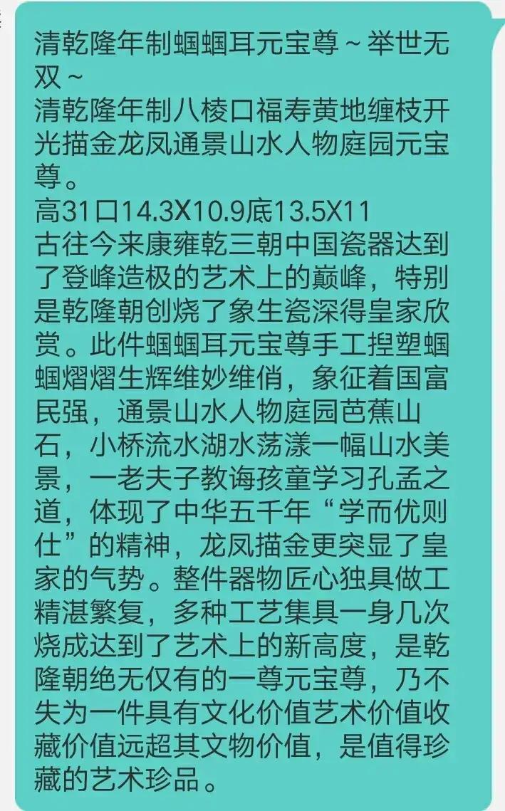 清乾隆年制八棱口福寿黄地缠枝开光描金龙凤,蝈蝈耳通景山水人物庭园元宝尊~举世无双~共鉴赏[灵光一闪][灵光一闪]