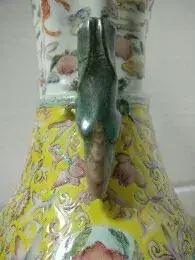 清乾隆年制八棱口福寿黄地缠枝开光描金龙凤,蝈蝈耳通景山水人物庭园元宝尊~举世无双