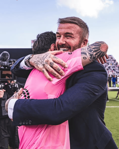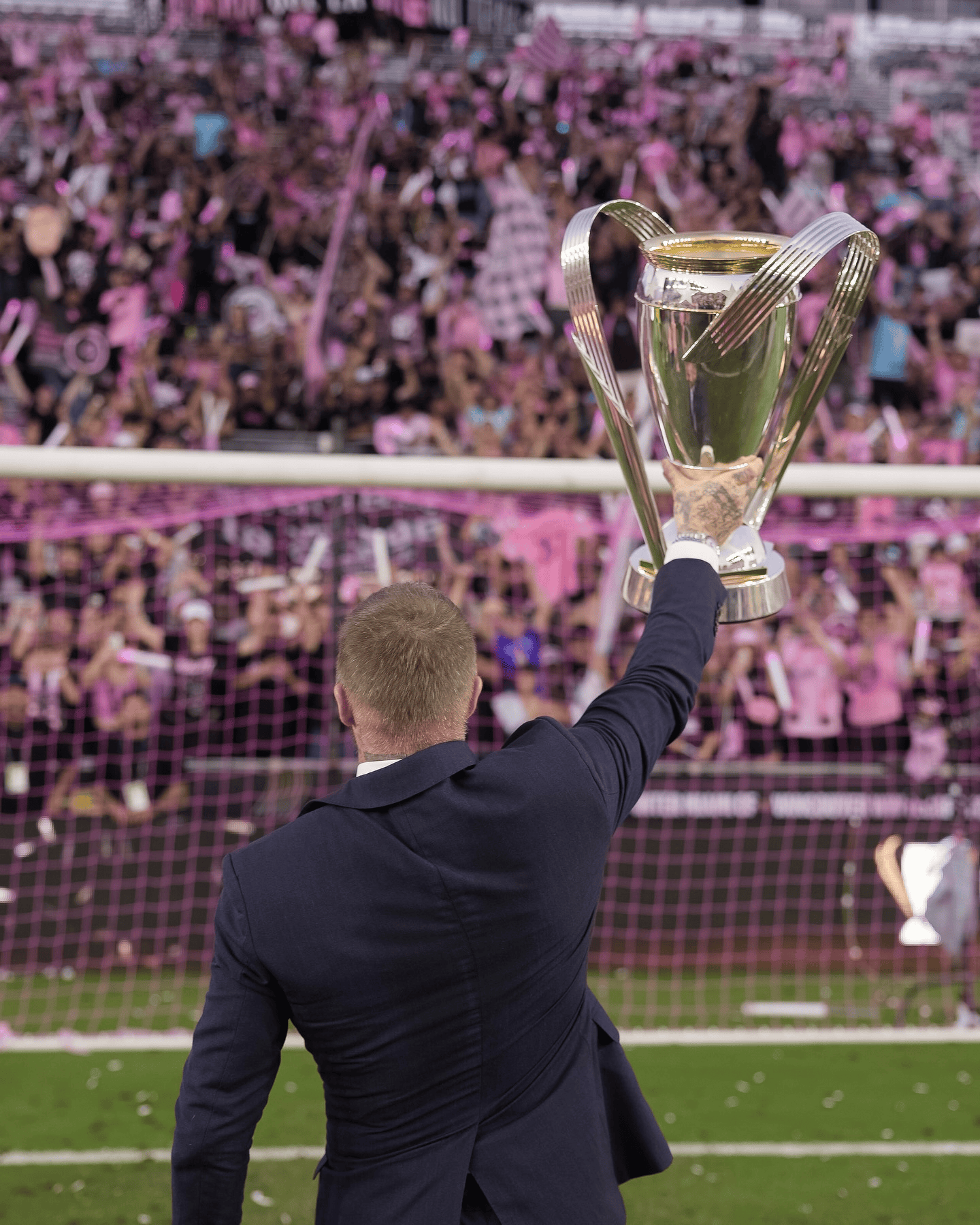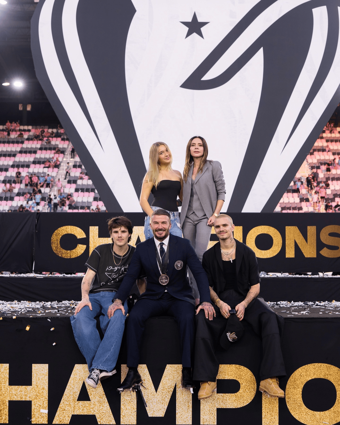 迈阿密国际老板贝克汉姆社媒晒家人与奖杯的合照,并写道: