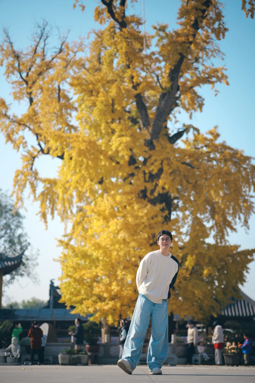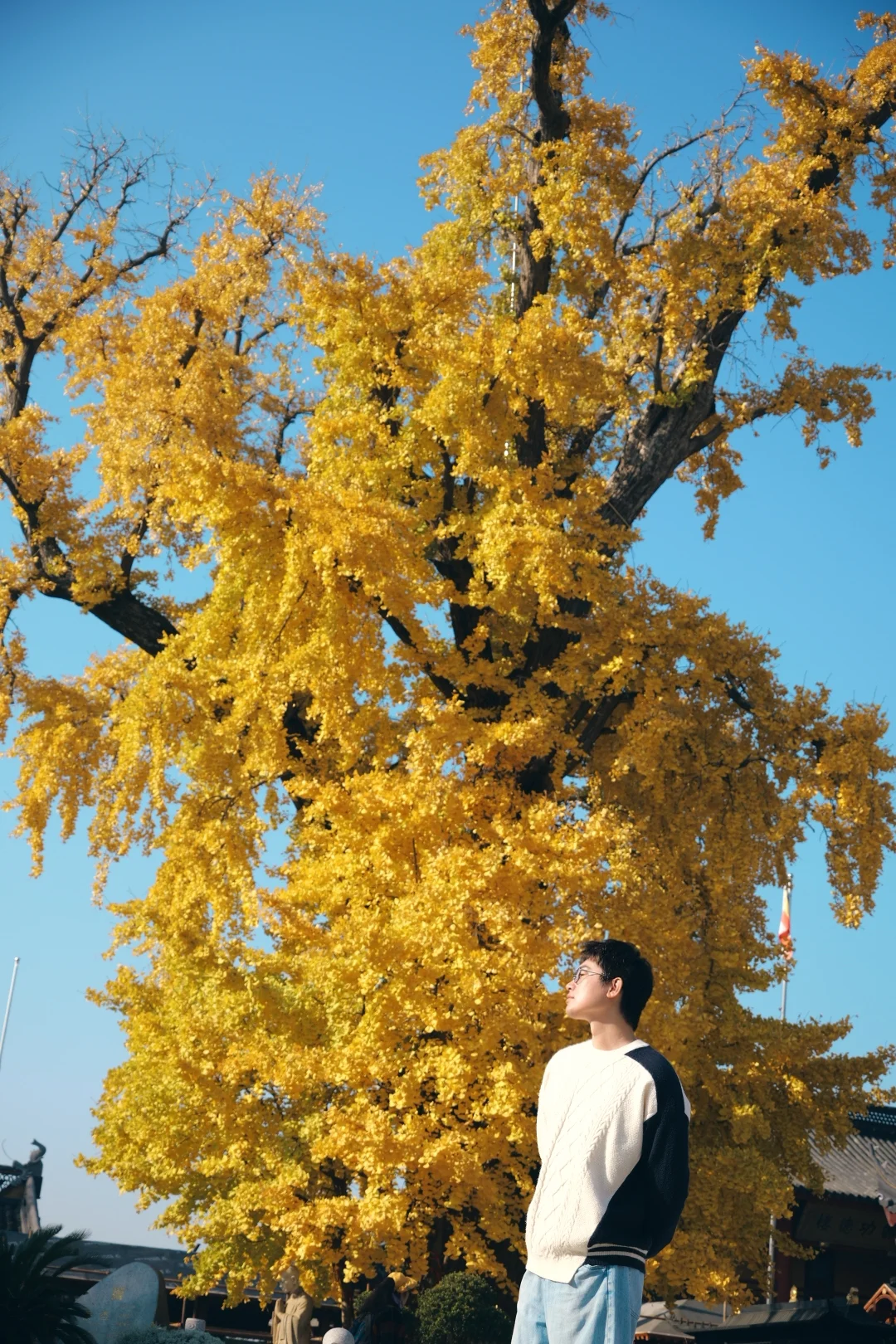 2. 站在银杏树下仰拍,能拍出满屏金黄的沉浸式画面