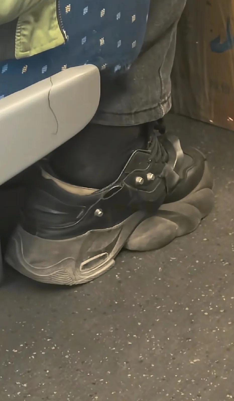 高铁上,看到的这一幕,惊呆了。这增高鞋垫都快“顶”出鞋子了,小伙子,这怎么走路?