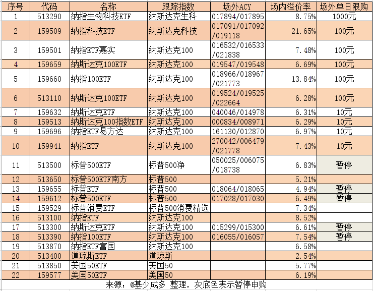 今天继续更新纳斯达克100指数基金限购情况,本周又有两只基金限购额从100元降低至10元。