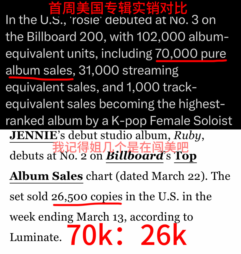 李涛,金珍妮专辑全球综销数据,和美国实销(不含流媒折算)数🍊均不如朴彩英,为什