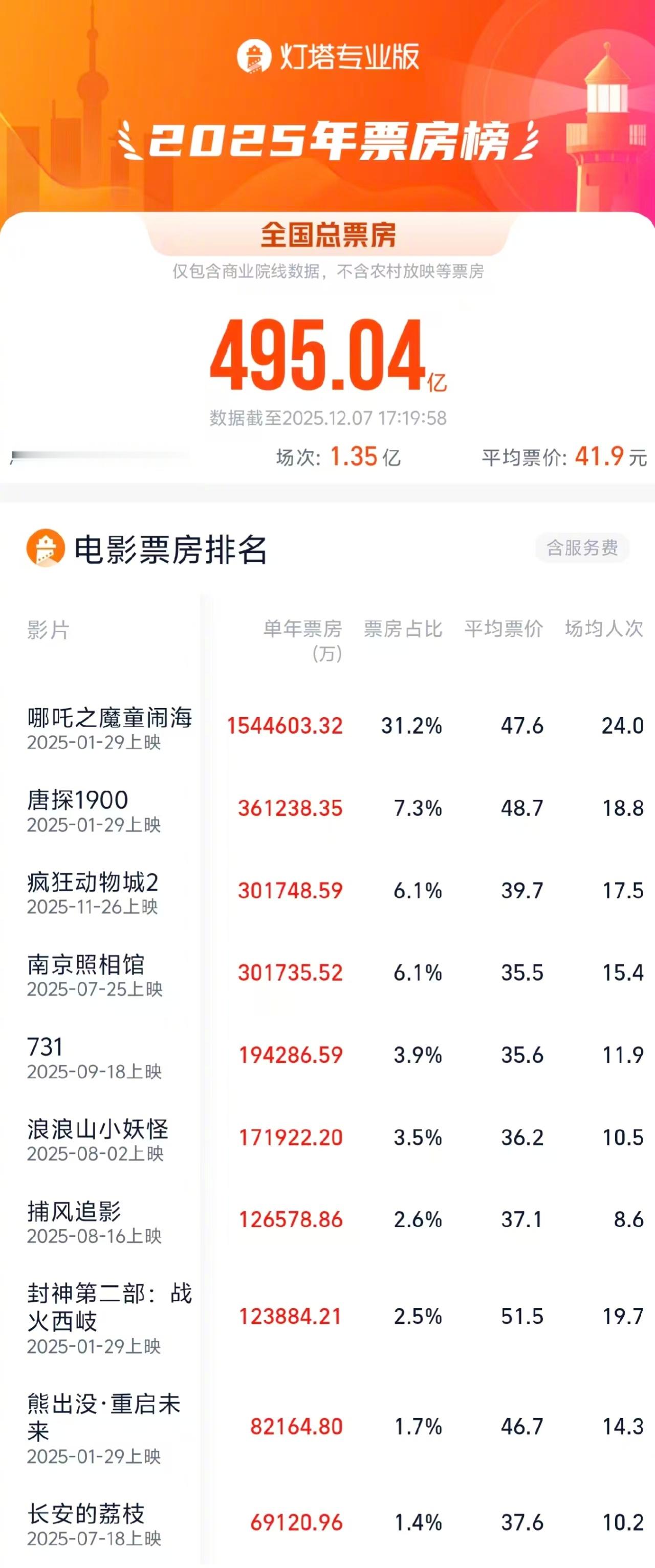 疯狂动物城2年度票房前三 据灯塔专业版,截至12月7日,《疯狂动物城2》总票房(