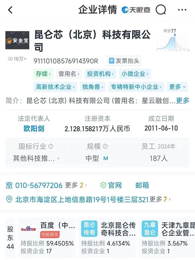 天眼查显示,昆仑芯是由百度内部孵化的AI芯片公司,于2021年4月完成独立融资,首轮估值约130亿元,百度为控股股东,持股比例为59.45%。截至2025年7月,昆仑芯已经历了D轮融资,投资方包括上河动量资本、山证投资、国新基金下属的高层次人才基金、中移和创等。