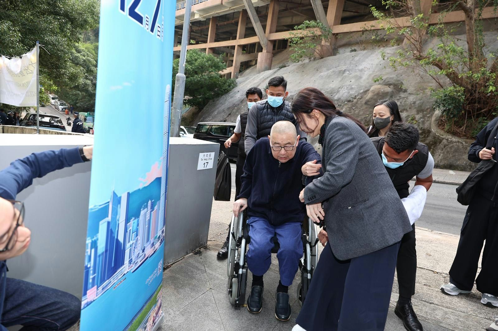 咱就是说富豪出街排场也太大了!刘銮雄坐着轮椅被甘比扶着投票,保镖立马紧张递白毛巾