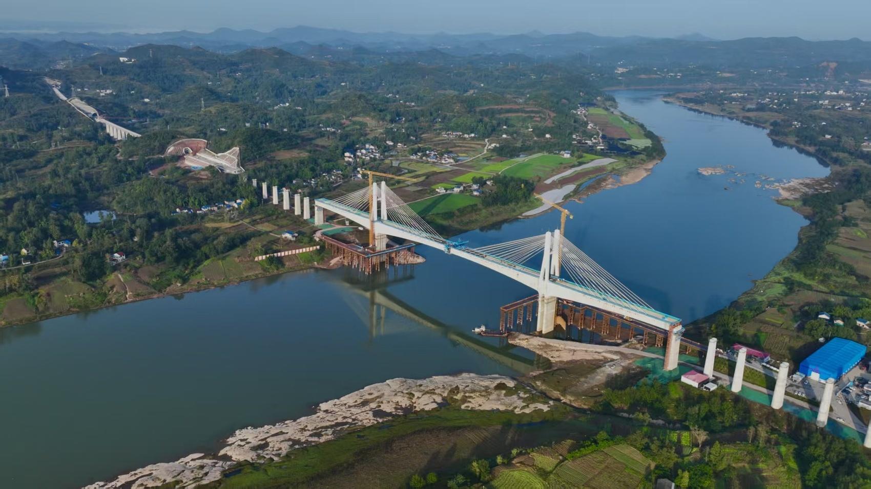 11月26日,成达万高铁全线控制性工程渠江特大桥顺利合龙。图片由成达万高铁公司提供