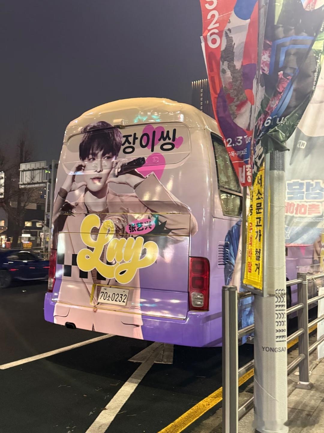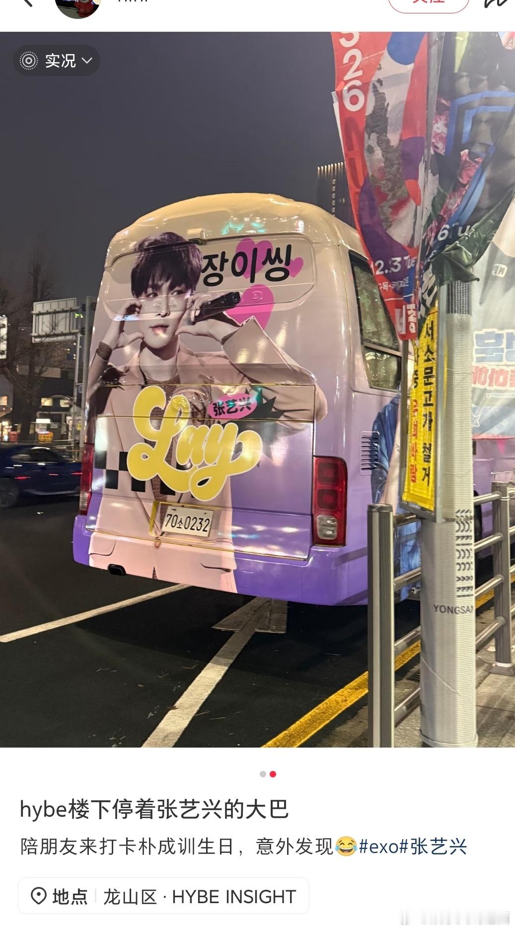 有人在hybe楼下遇到了张艺兴的应援大巴~贝壳们你们真是无处不在啊 原来是的应援大巴
