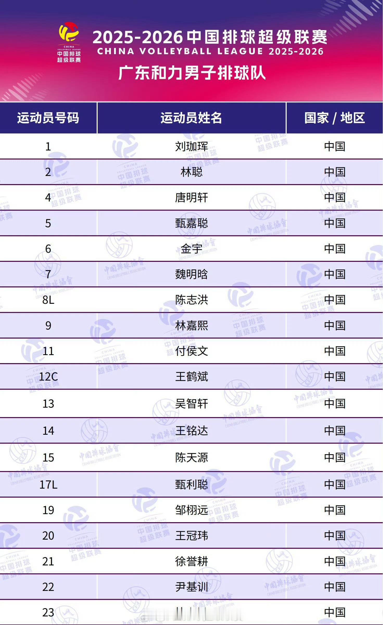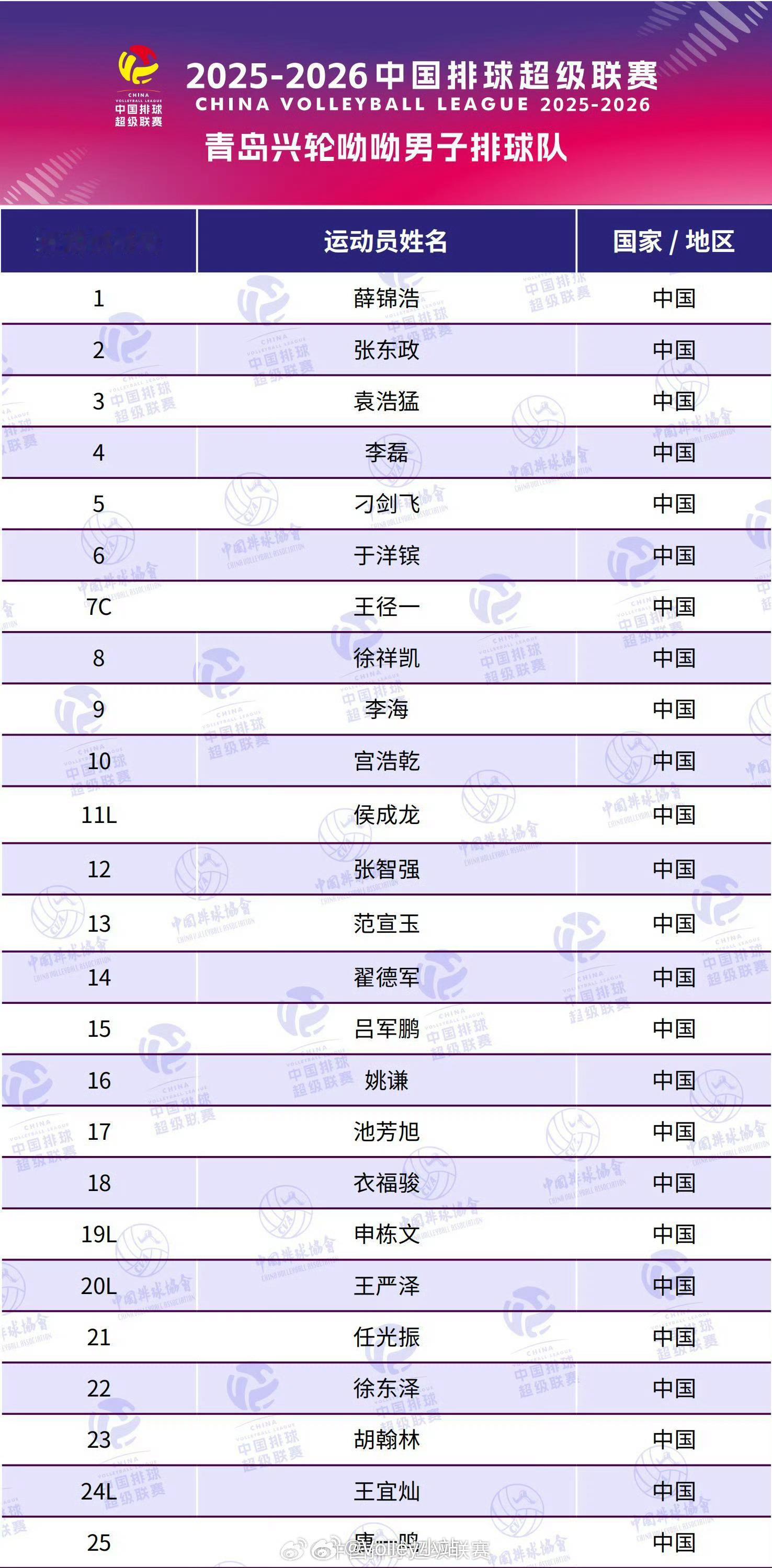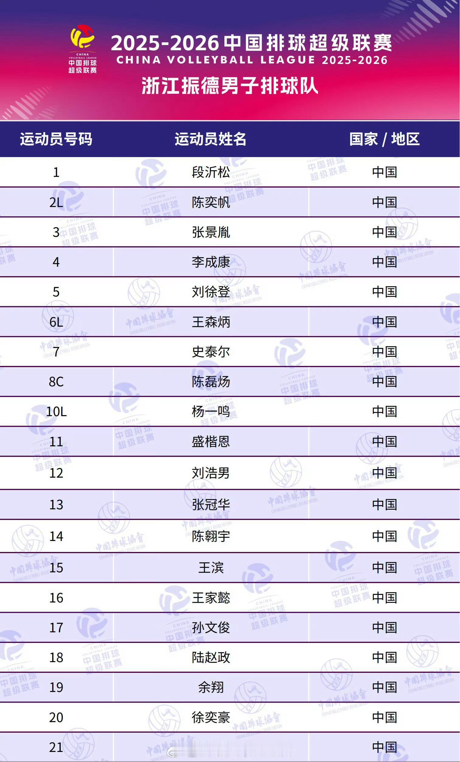 2025-2026中国男排超级联赛A级8支队伍大名单排超联赛2025-2026中国排球超级联赛