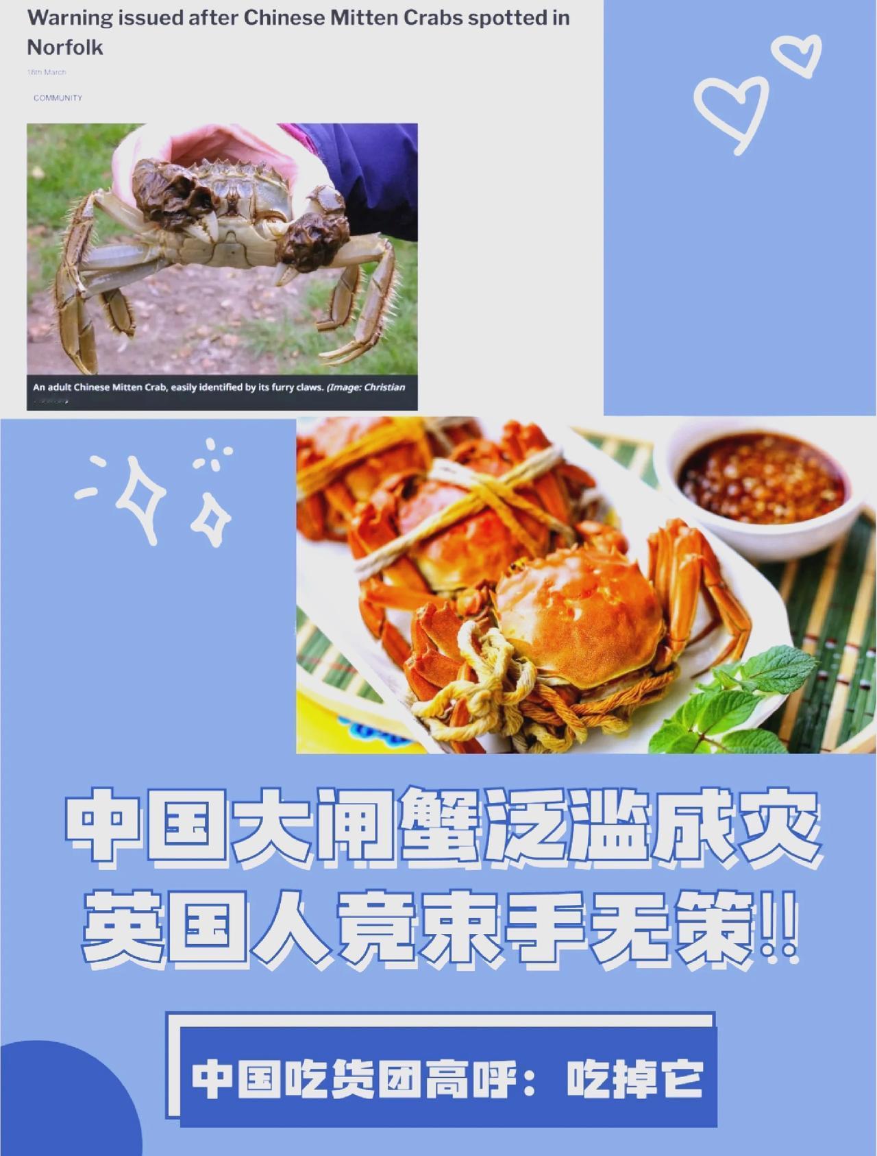 大闸蟹为何会在欧美泛滥成灾 当德国渔民的渔网里捞上来的不是鳗鱼而是密密麻麻挥舞着大钳的大闸蟹;当英国泰晤士河畔的居民看见河堤“自己蠕动”——这幕让欧美焦头烂额的景象,戳穿了一个最真实的真相:不是大闸蟹太“凶”,而是欧美既不懂中国的饮食智慧,又失了生态治理的分寸! 谁能想到,这让德国人每年损失8000万欧元、逼得他们把螃蟹碾碎做饲料的“入侵者”,百年前不过是跟着货轮压舱水偷渡到欧洲的小小蟹苗。在咱们长江流域,大闸蟹有鳜鱼、水鸟制衡,有养殖户精准控量,更有14亿人的胃把它端上餐桌,成了金秋最鲜的念想;可到了欧美,温暖的河水没有天敌,松软的河堤成了它们打洞的温床,一只雌蟹一次产卵百万枚,半个世纪就把泰晤士河、易北河变成了“蟹窝”。更讽刺的是,欧洲工业化留下的污染河道,本土鱼虾活不下去,偏偏大闸蟹能扛住重金属、适应恶劣水质,硬生生在绝境里繁衍出百万大军。 这哪里是“物种入侵”,分明是文化与治理的双重错位!咱们掰开蟹壳吮蟹黄、拆蟹腿挑肉丝,把吃大闸蟹变成一场仪式;可欧美人生怕蟹黄是“内脏垃圾”,忌惮淡水蟹的寄生虫风险,宁肯焚烧、掩埋,也不肯学着解锁清蒸、香辣的吃法。他们斥巨资研发捕蟹陷阱,却没想过最简单的道理:在中国,“吃”从来都是解决物种过剩的终极智慧——小龙虾牛蛙,哪一个不是从泛滥吃到靠养殖续命? 网友的评论戳中了要害:“不是大闸蟹太嚣张,是老外没掌握‘吃货的终极武器’!”有人调侃“组团去欧洲实现大闸蟹自由”,有人怒怼“一边浪费美食,一边喊着生态危机,早该学学中国的平衡之道”这份哭笑不得的反差,藏着的是中国人刻在骨子里的生存智慧:我们懂与自然共处,懂用烟火气化解生态难题,更懂每一种生物,都能在合理利用中找到属于自己的位置。 如今德国华人餐馆把本地大闸蟹端上餐桌,1欧元一公斤的价格让华侨直呼“实现蟹自由”,这何尝不是一种启示?自然的难题,从来都不该靠对抗,而是靠理解与融合。就像咱们中国人懂的:万物皆有其用,少一点偏见,多一点变通再“凶”的大闸蟹,也能从“生态麻烦”变成舌尖美味。