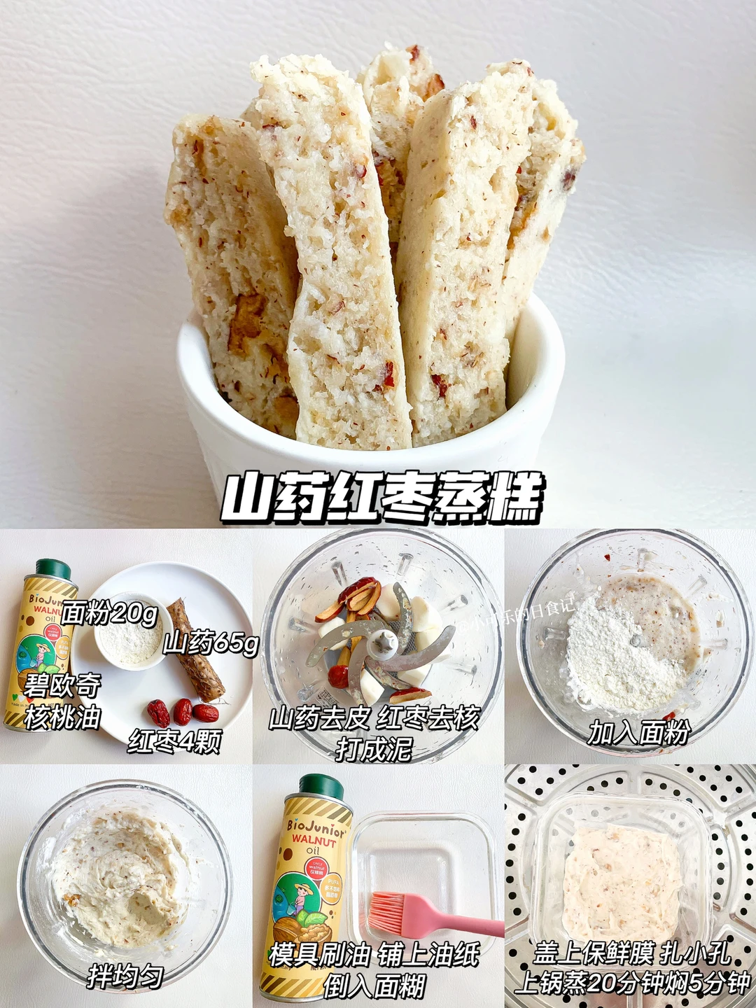 🛒食材:山药65克、红枣4颗、面粉20克、碧欧奇核桃油