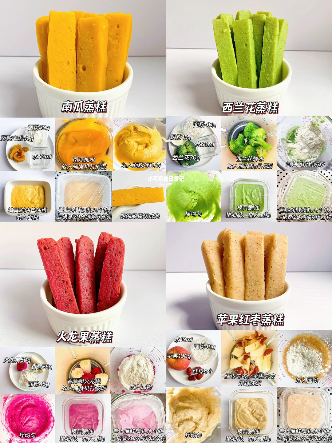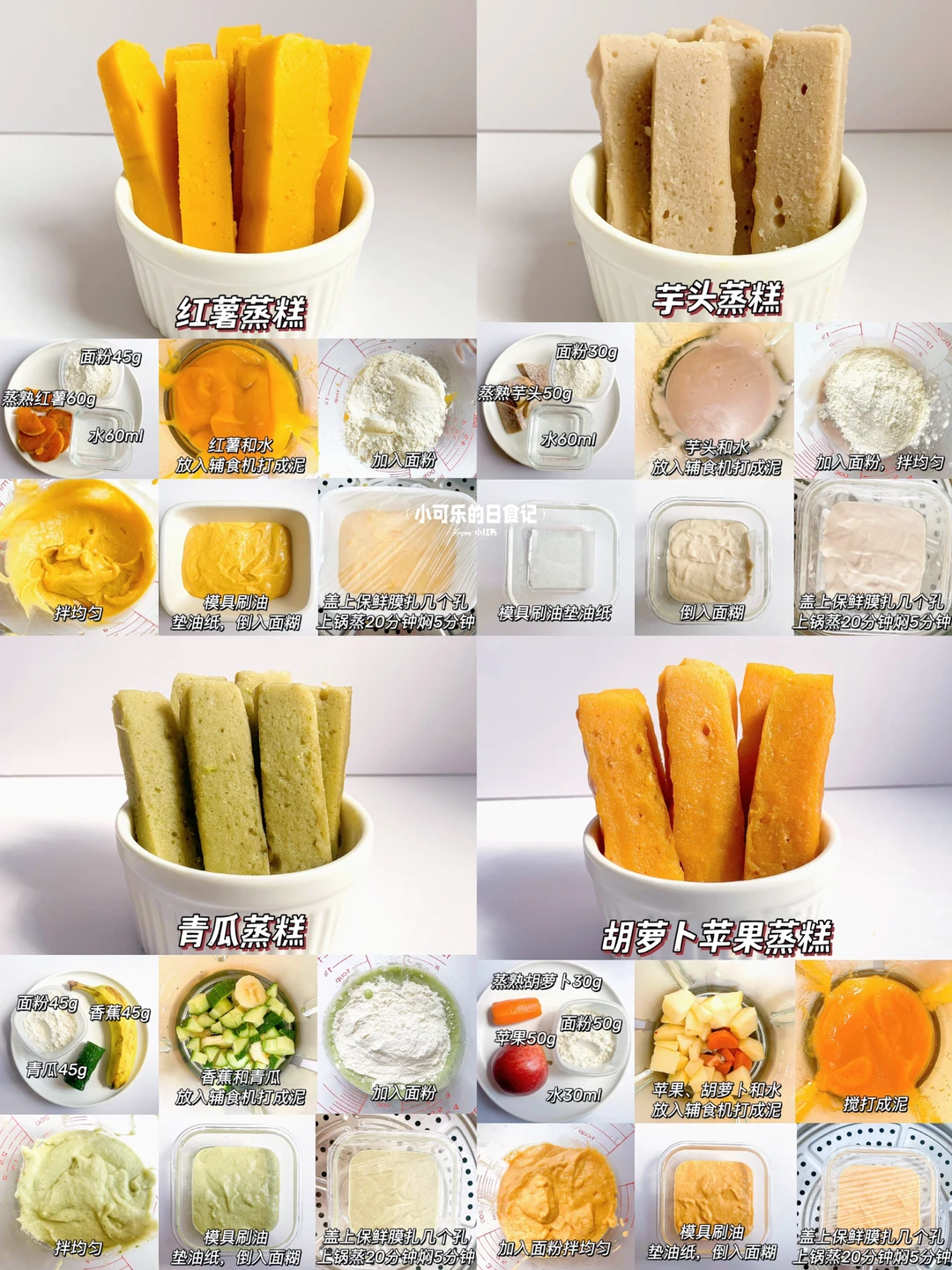今天分享无蛋版的蒸糕,香甜软糯,还没长牙的宝宝也可以吃哦。6款都是无蛋、无蛋清和无山药版,合适鸡蛋过敏的宝宝❤️每款搭配都好吃,还能锻炼宝宝抓握能力和咀嚼能力,快给宝宝安排吧