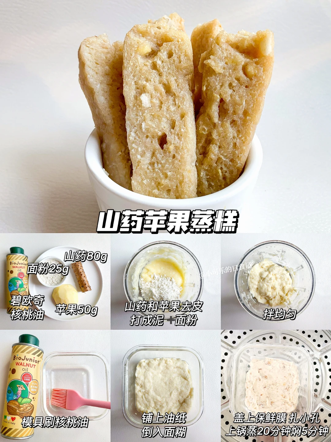 🛒食材:山药80克、苹果50克、面粉25克、碧欧奇核桃油