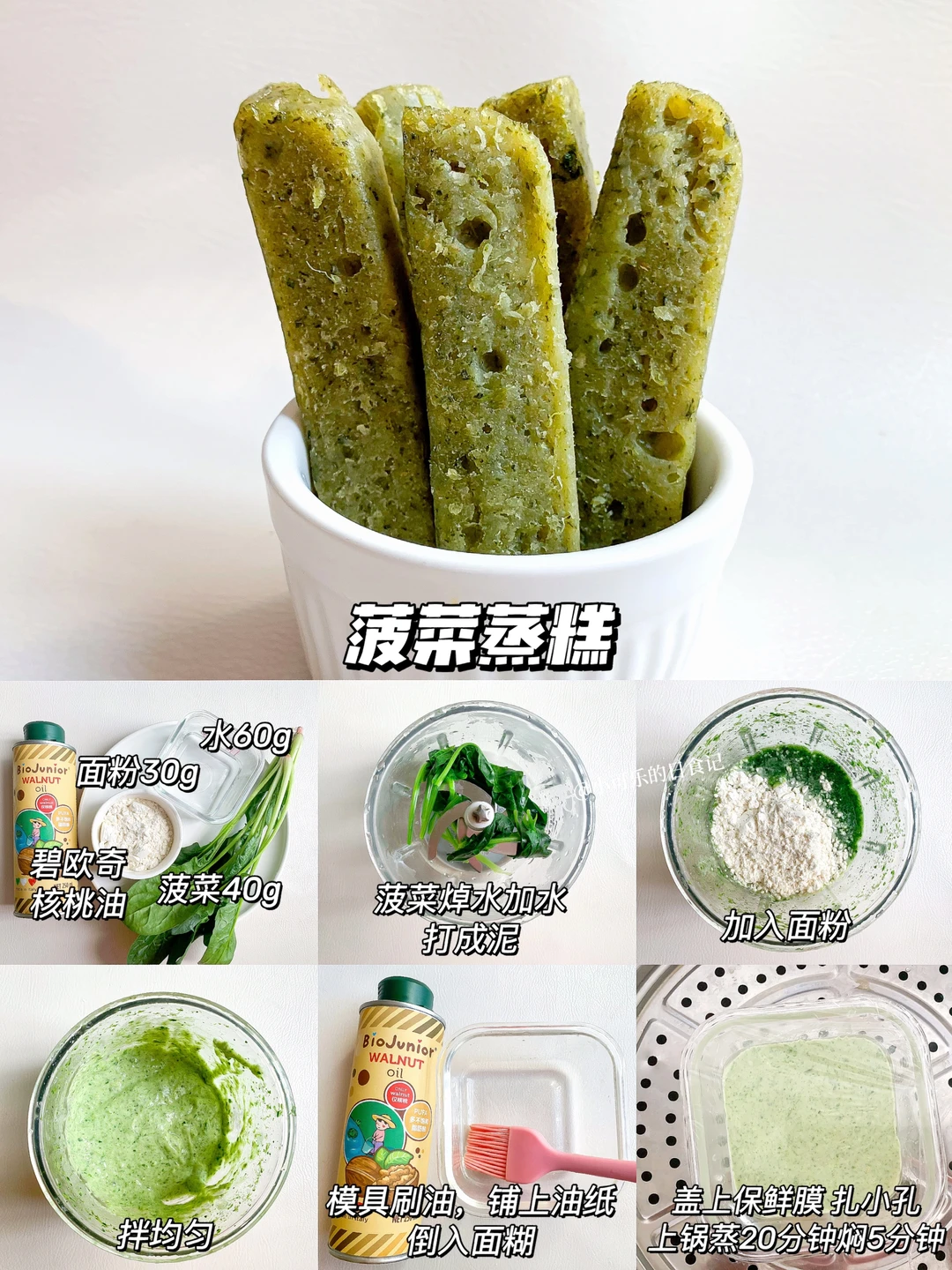 🛒食材:菠菜40克、面粉30克、水60毫升、碧欧奇核桃油