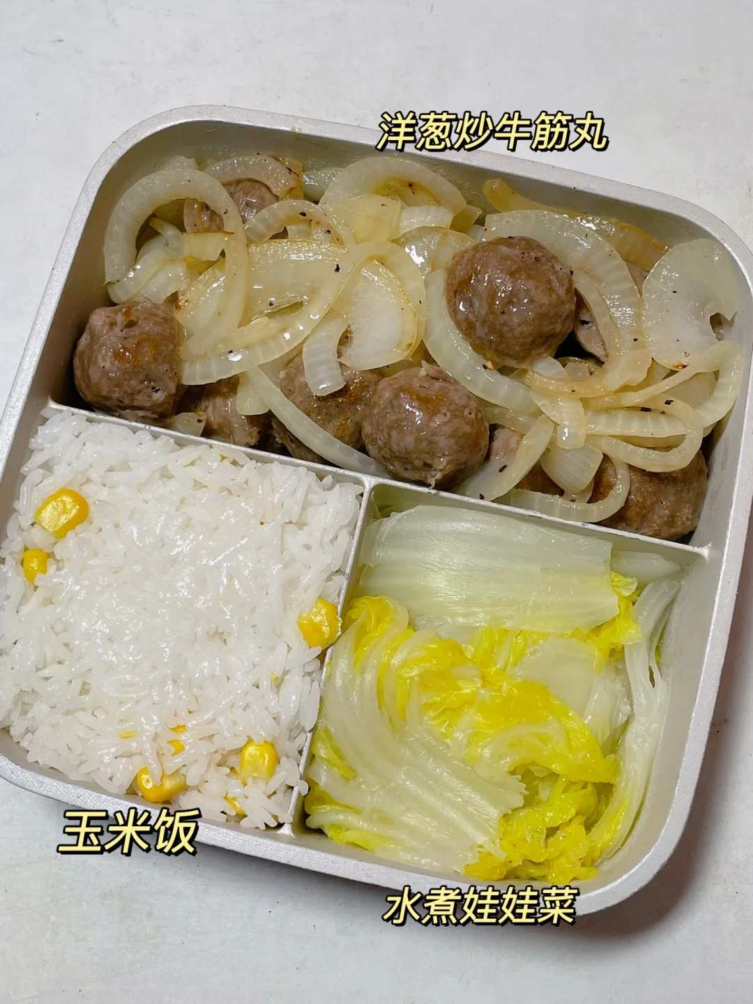 📍玉米饭+洋葱牛筋丸+水煮白菜
