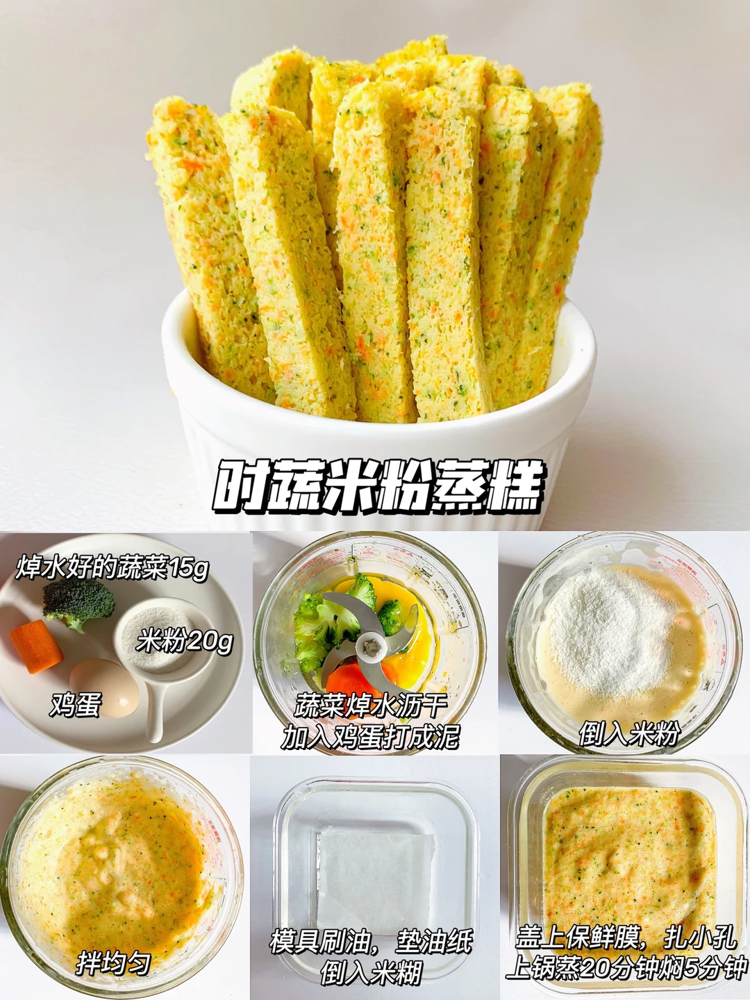 今天整理了小月龄宝宝入门级的手指蒸糕条做法,做法简单,米粉版的口感松软,每款搭配都好吃😋 还能锻炼宝宝抓握能力和咀嚼能力,快给宝宝安排吧✅