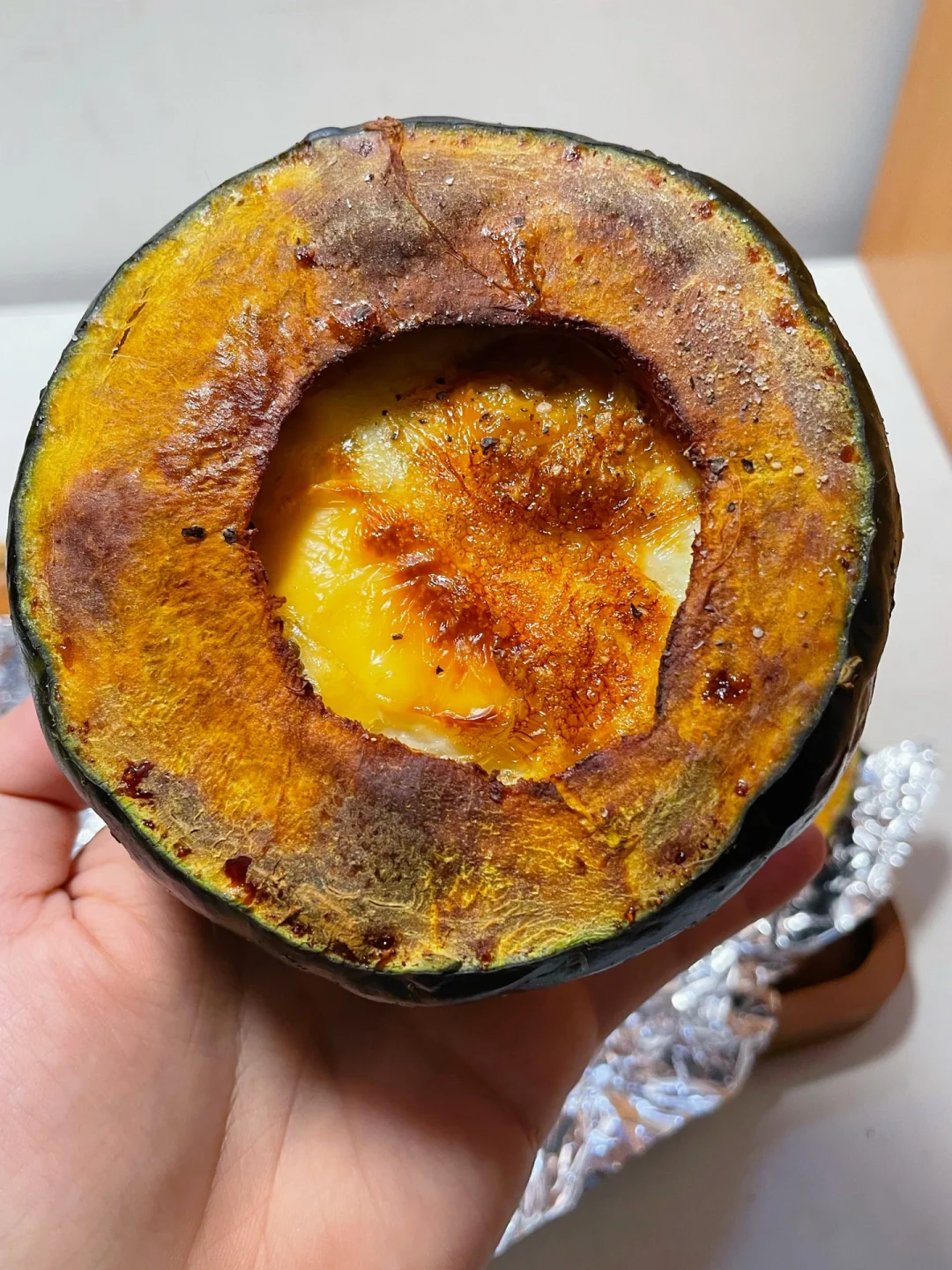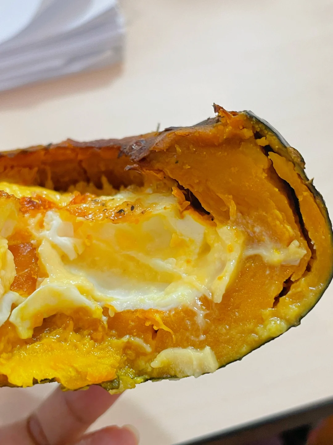 ❗一定要用板栗味贝贝南瓜,口感微干,扎实软绵,和烤鸡蛋很搭!