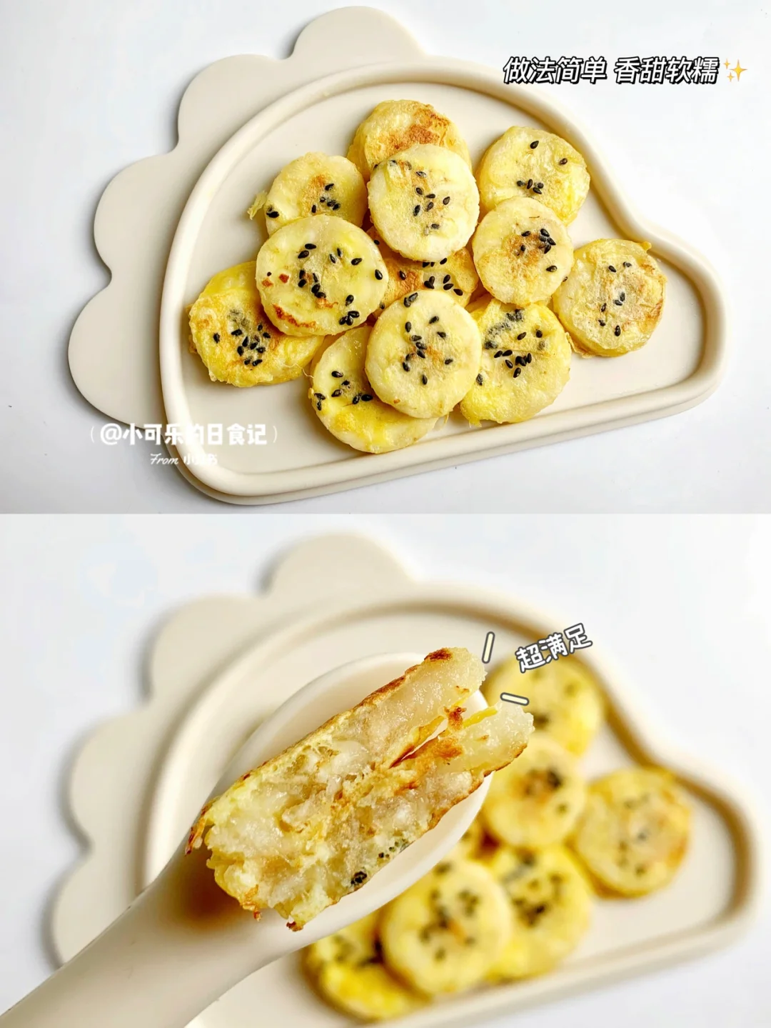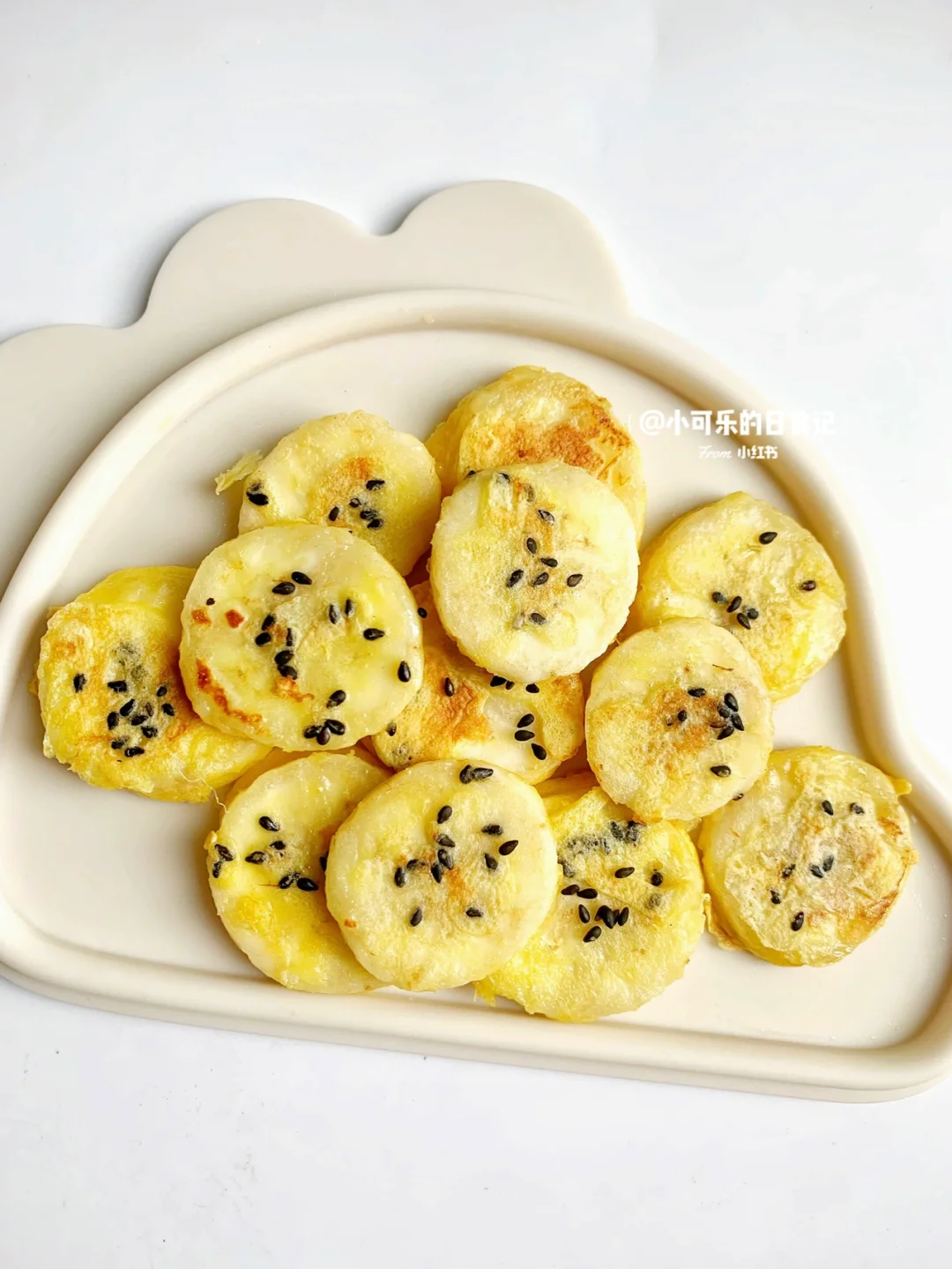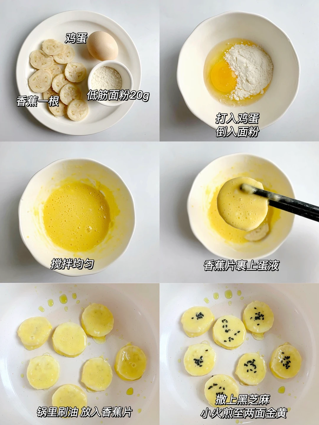 🌈香蕉真是辅食百搭款,今天分享这道香蕉夹心小饼,不仅可以锻炼宝宝的咀嚼能力,还可以锻炼宝宝抓握能力,香甜软糯好吞咽,做法也很简单,快给宝宝安排吧 - 🌟食材 鸡蛋 香蕉 熟黑芝麻 低筋面粉20克 . 🌟做法 1⃣️鸡蛋打散加入面粉,搅拌至无干面粉 2⃣️香蕉裹上蛋液,锅里刷油,放入香蕉片,撒上黑芝麻,煎至两面金黄(全程小火) 8个月宝宝辅食|9个月宝宝辅食|10个月宝宝辅食|一岁宝宝辅食|宝宝手指食物 ❤️有什么问题可以在下方留言,看到都会回复,关注我带您解锁更多辅食制作…