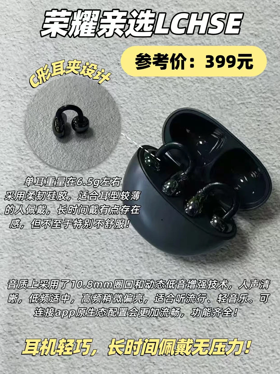 荣耀亲选 LCHSE这个佩戴轻盈、基础听歌也够用!
