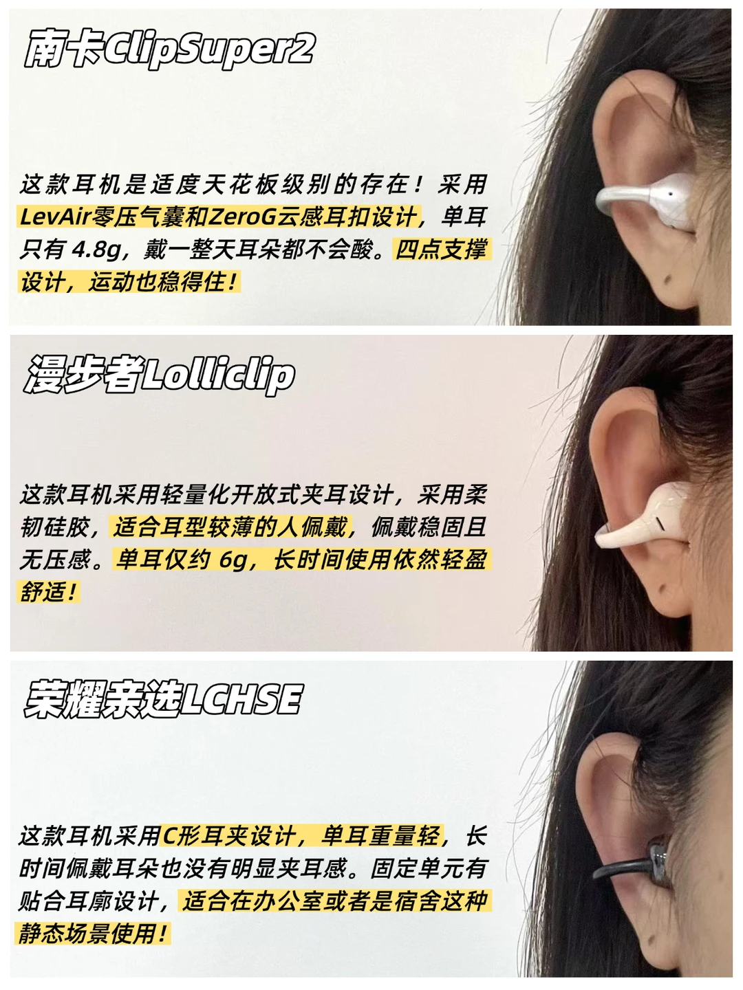 准备入手开放式耳机的宝子们看这篇就够了!南卡 ClipSuper2、漫步者 LolliClip、荣耀亲选 LCHSE 这三款都是讨论度很高的中高端开放式耳机,但到底适合谁?核心差异在哪?一篇带你快速分清楚![哇R]