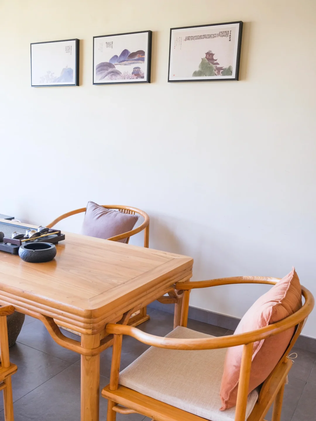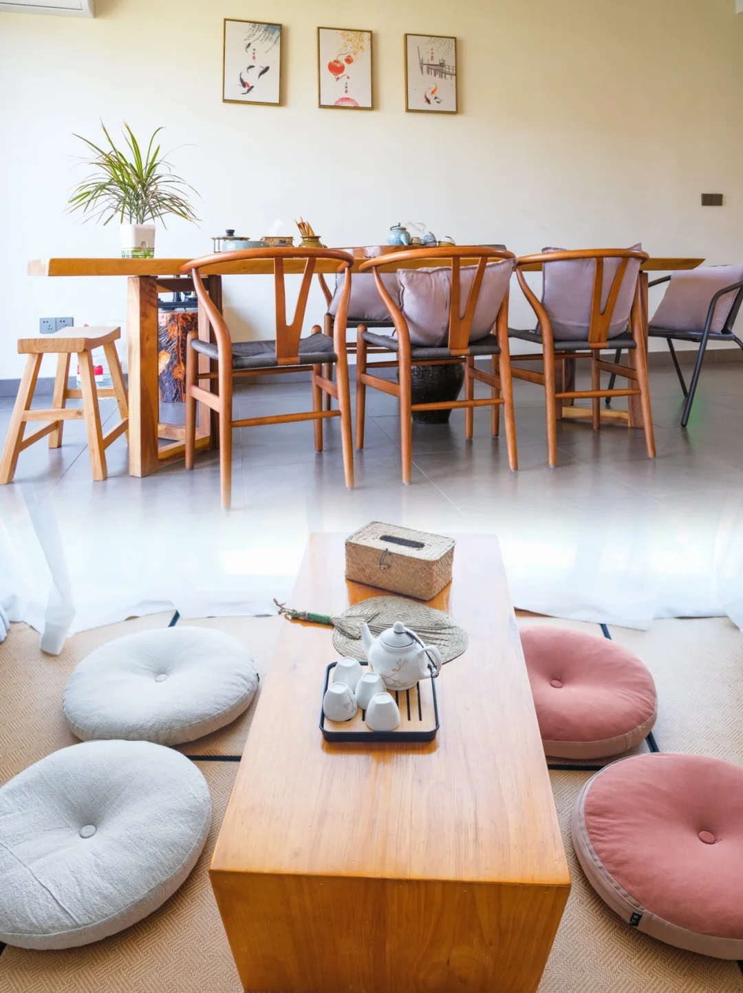 2⃣️日式庭园简约风装修,房间配有书桌和榻榻米,走廊也有休闲座椅🪑和茶室,适合商务人士度假远程办公💻;