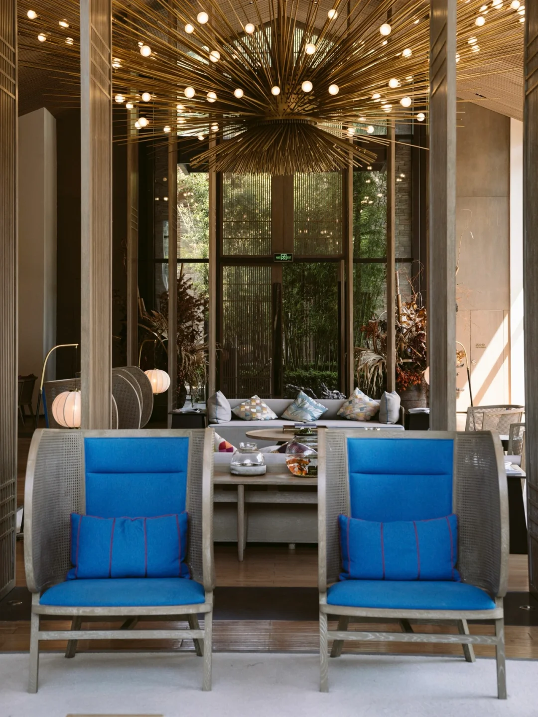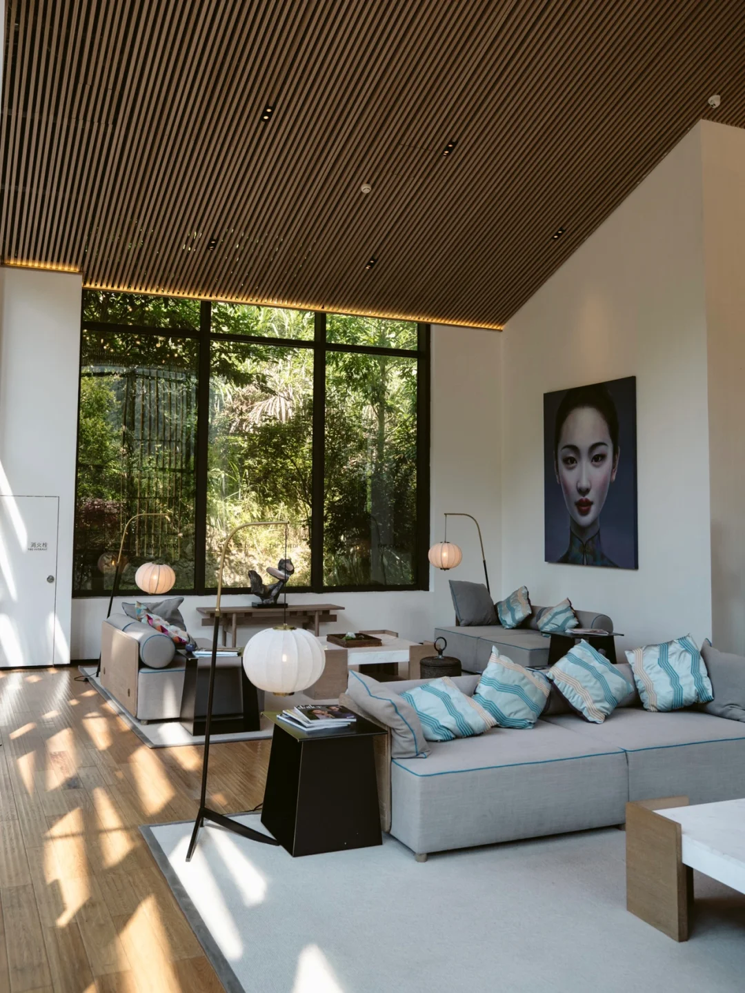 ☀️房内有咖啡机、电视📺和一个超大的沙发,落地窗都是可以看到山景和湖景。