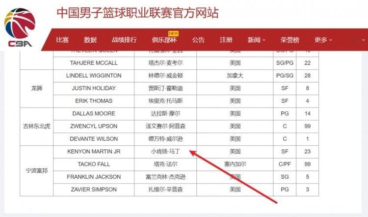 00状元马丁之子 CBA官网:宁波男篮已经为小肯扬·马丁完成注册