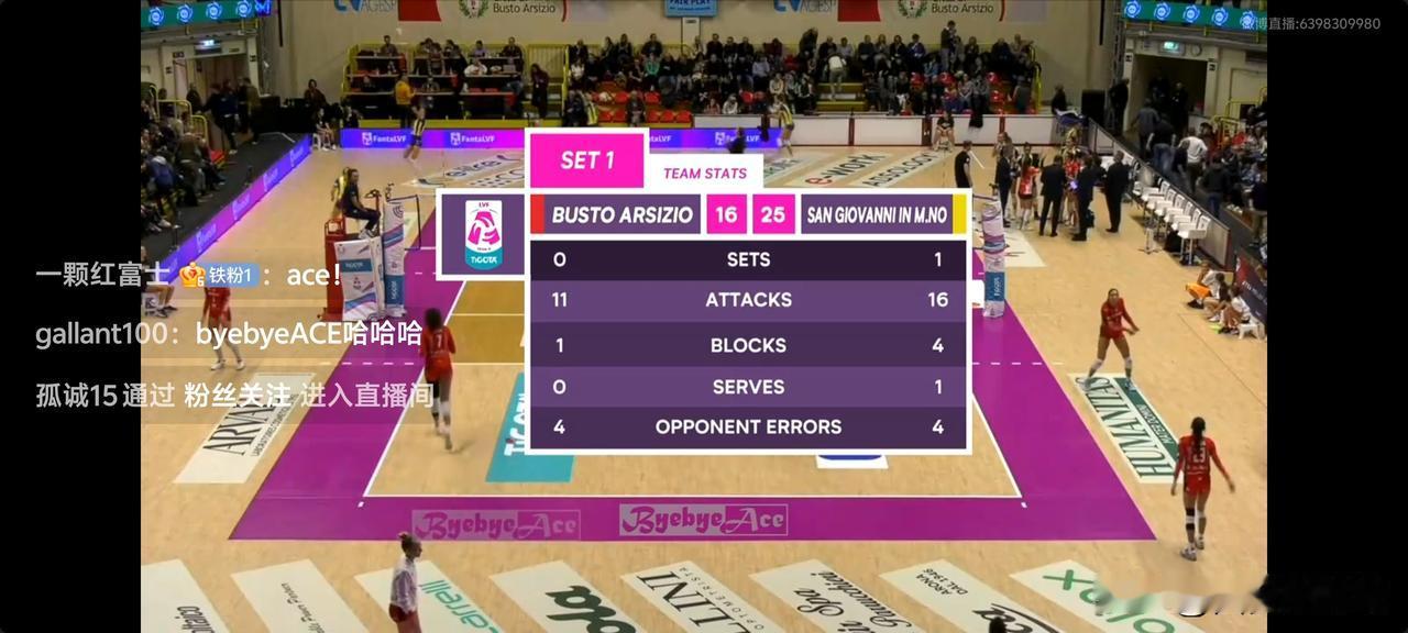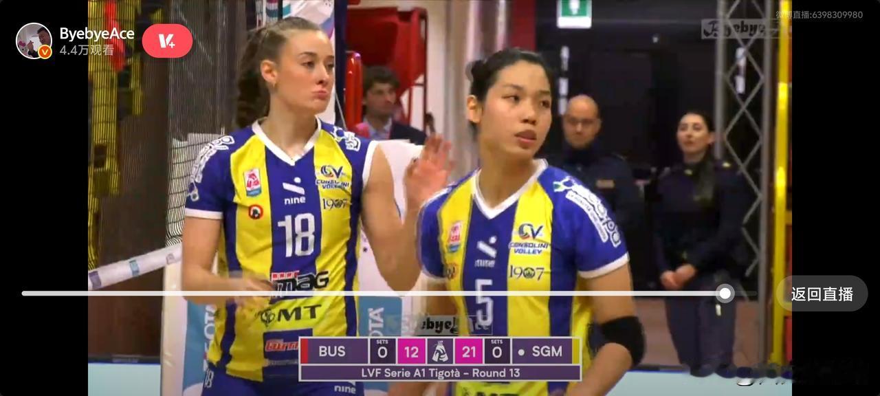 庄宇珊的发球威胁性真好[赞] 第一局局末,随着庄宇珊一记ACE球,排名倒数第一的圣乔瓦尼女排,先赢排名第六的布斯托阿西齐奥女排一局。 有庄宇珊加盟的圣乔瓦尼女排,突然脱胎换骨,首局打得风生水起。进攻端起色了,拦网得分也是对手四倍。 加油,雨刷,再接再厉,赢下比赛。意甲女排 土楼姑娘庄宇珊
