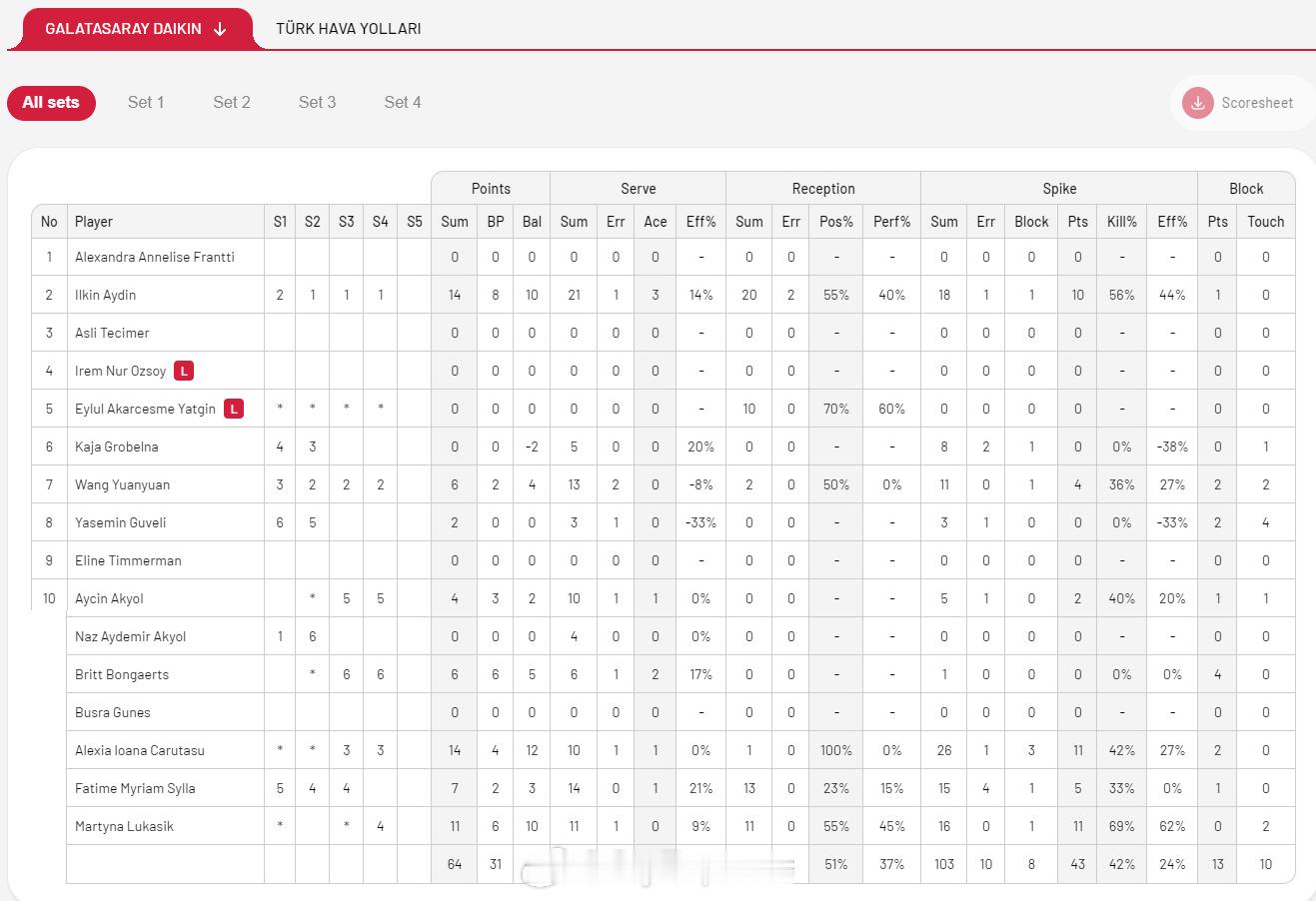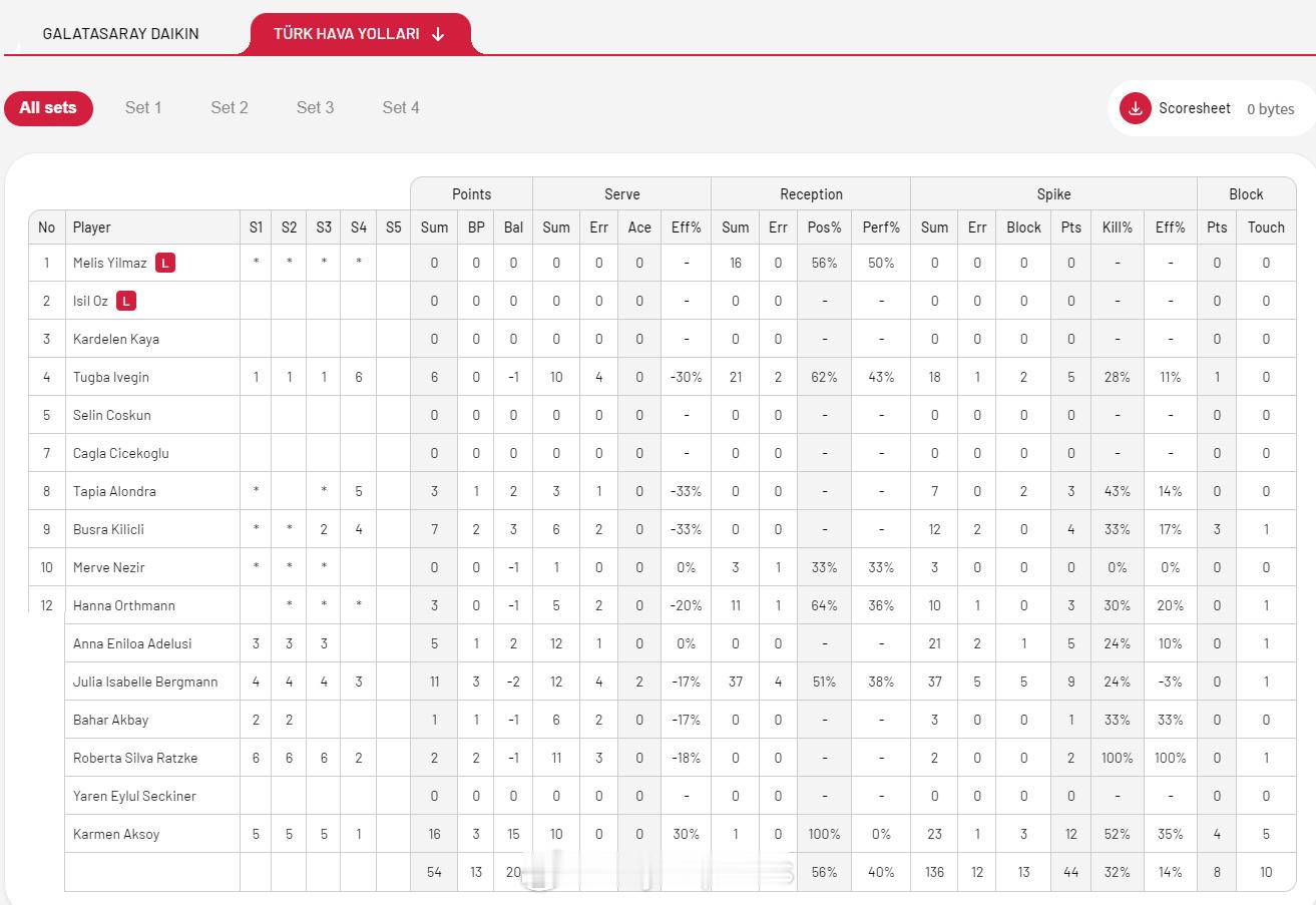 【土超女排加拉塔萨雷3-1土航 王媛媛首发6分】中国排球留洋动态 12月7日,土