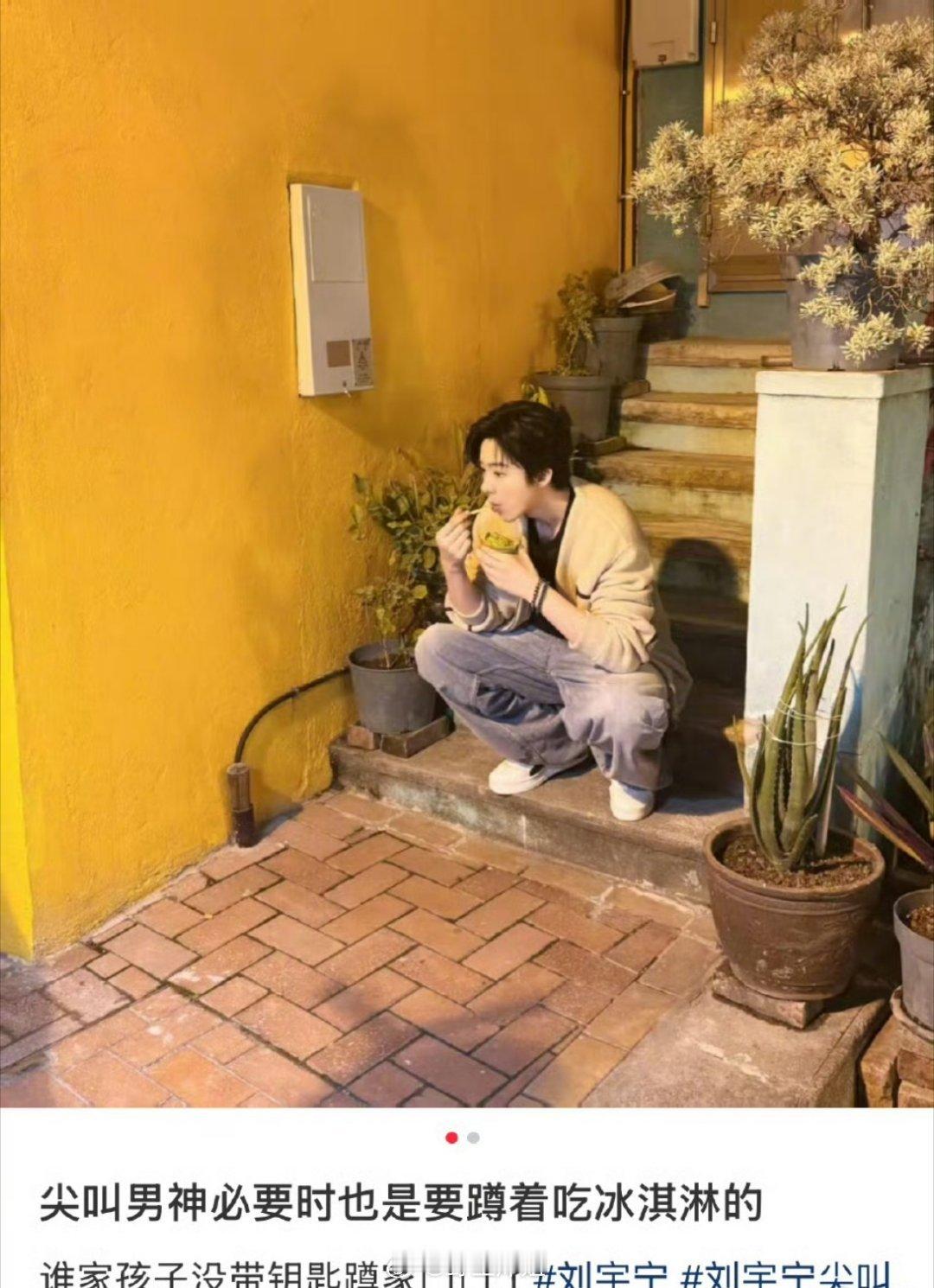 哈哈哈哈该说不说刘宇宁这个蹲着吃冰淇淋,真的很像那种忘记带钥匙没门进,等妈妈送钥