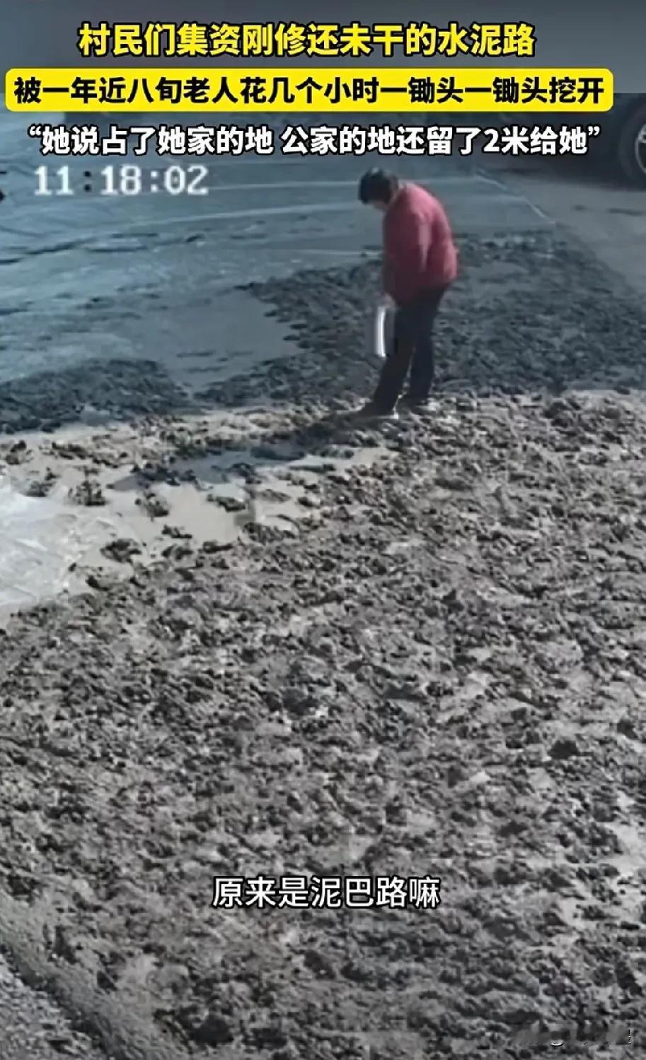 村民刚修好的水泥路,还没完全硬化就被人破坏了,破坏者是一位年近八旬的老太太,她个人觉得村集体修的路占了她家的地,不同意修! 当地村民部表示,这条路是村民合力修的,有出50的,有出500的,好不容易凑够了钱才修起来的。 村里根本没有多占她家的土地,反而给她家今预留出了2米的距离,老太太认为村里欺负她家,于是拿锄头破坏了,期间村里报了警,👮来了几次,但是走了以后,她又开始破坏了! 现在村民自己修条路非常不容易,而且修路是件造福群众的好事,路修好了出行才方便,经济才能发展。 年近八十的人了,不能倚老卖老装糊涂啊!不知道有没有人能管的了这位老太太!