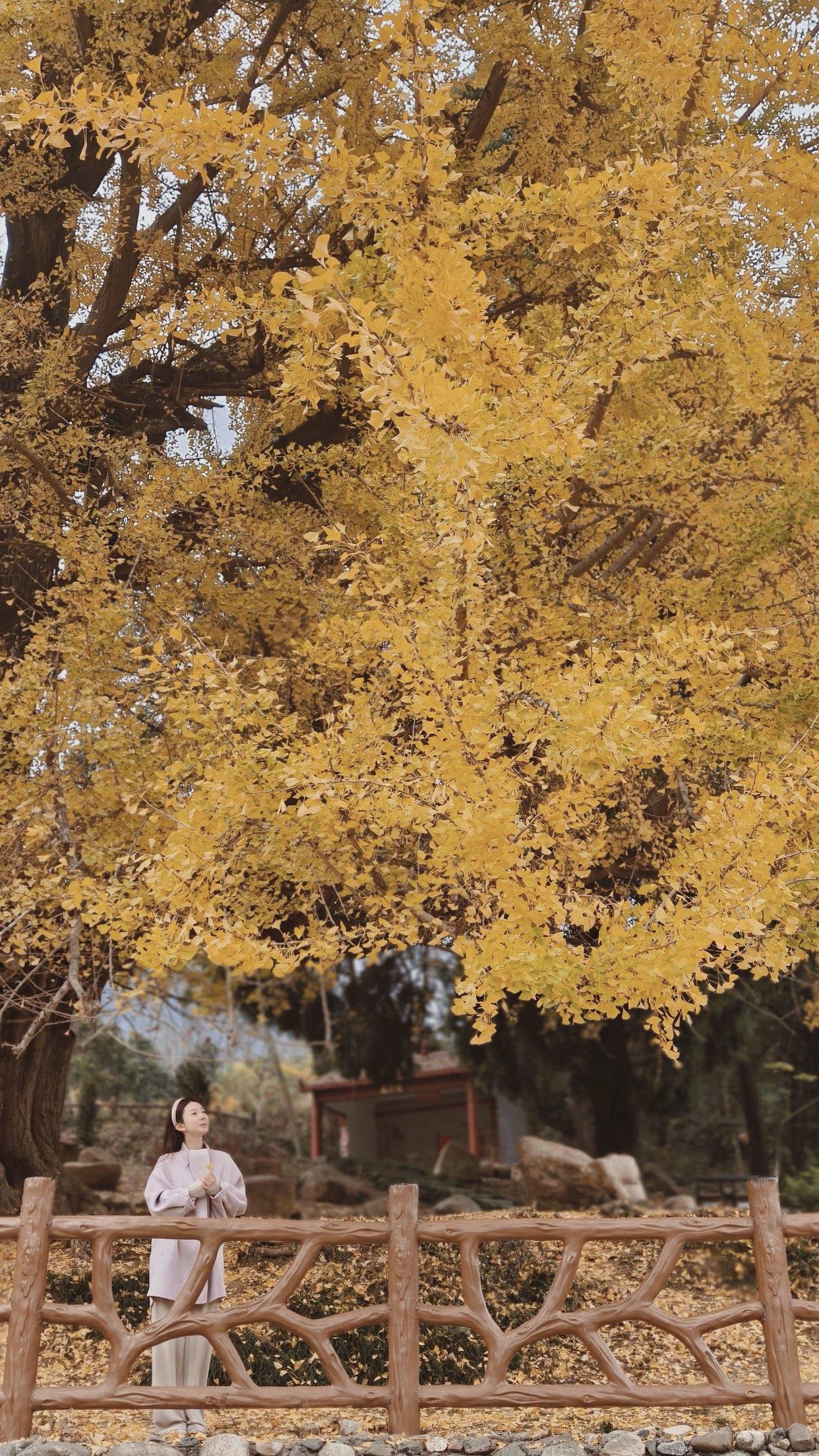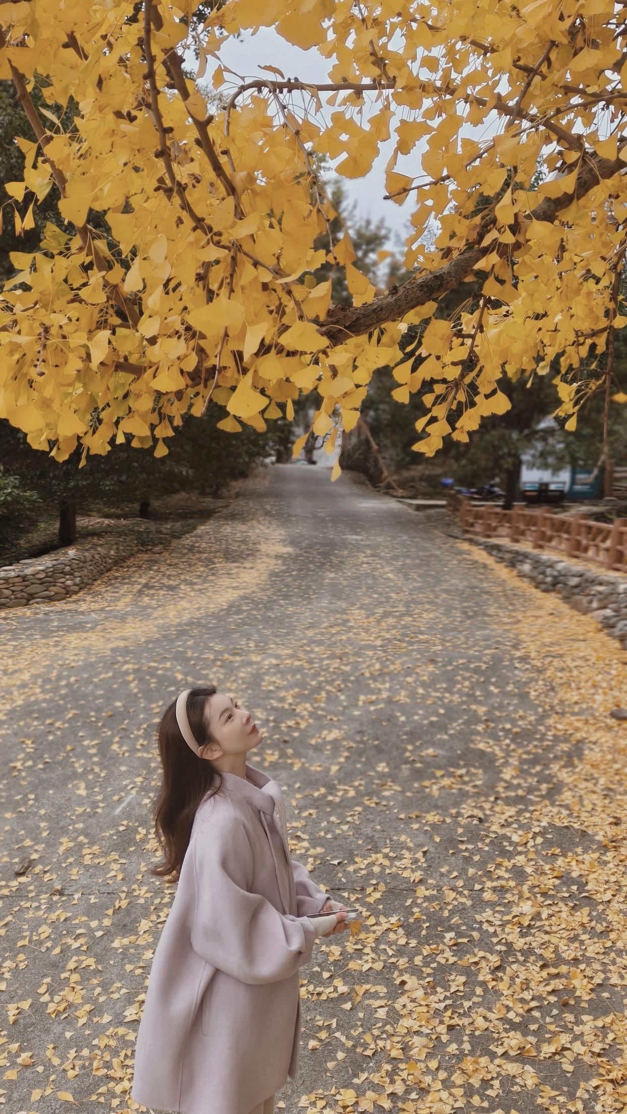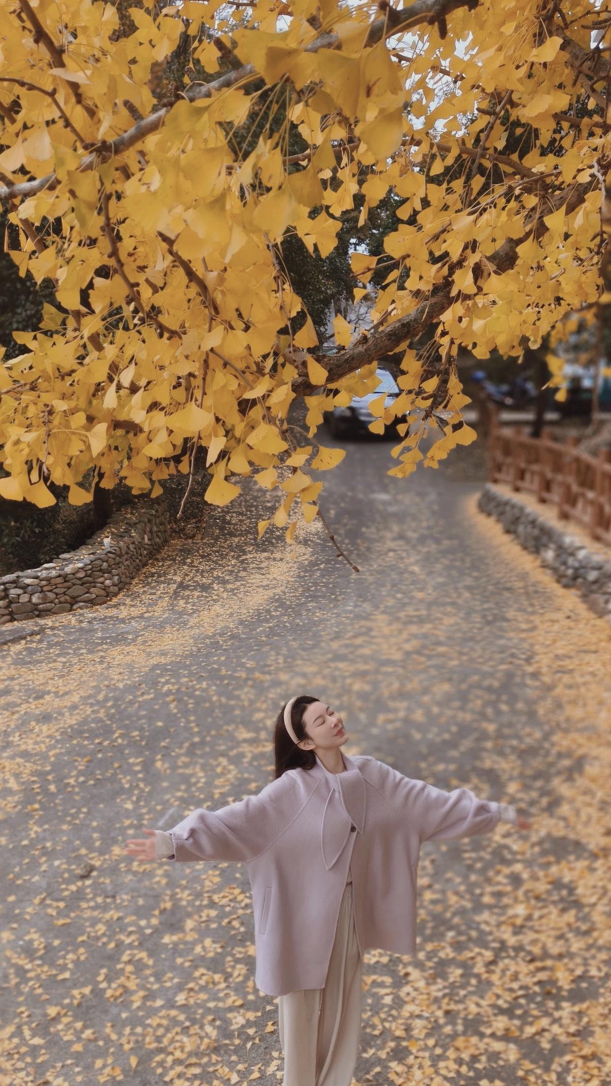 秋日漫步,落叶纷飞,少女漫步在金黄色的树荫下,感受大自然的温柔拥抱。🍂🍂🍂