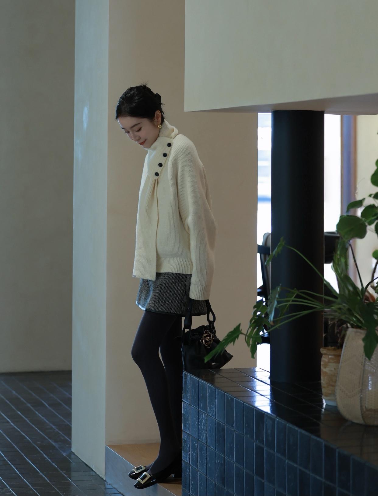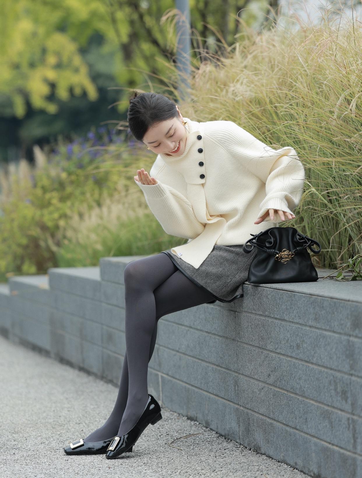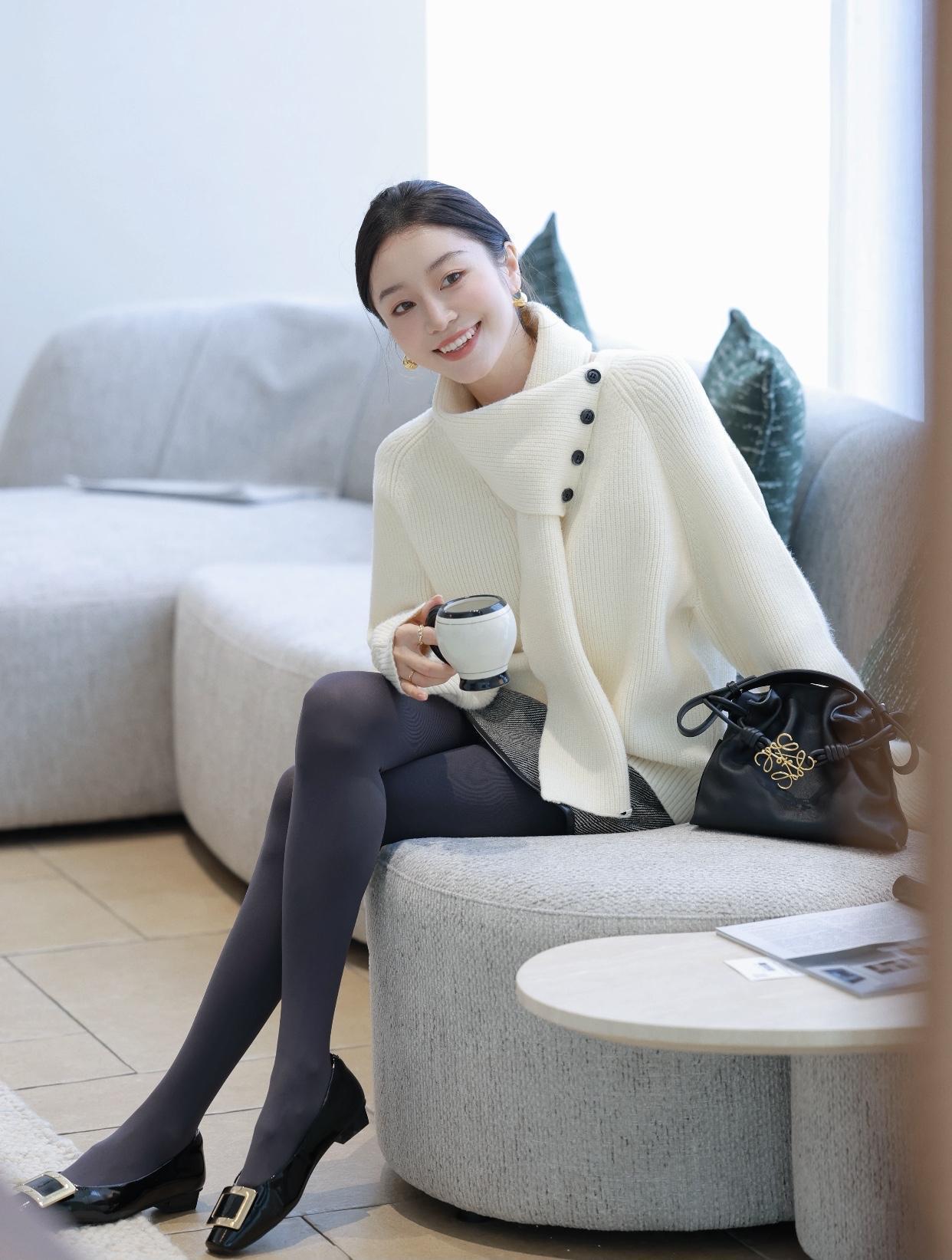 冬日暖阳下,优雅甜美的穿搭,享受宁静的午后时光。